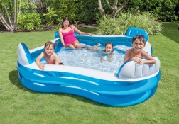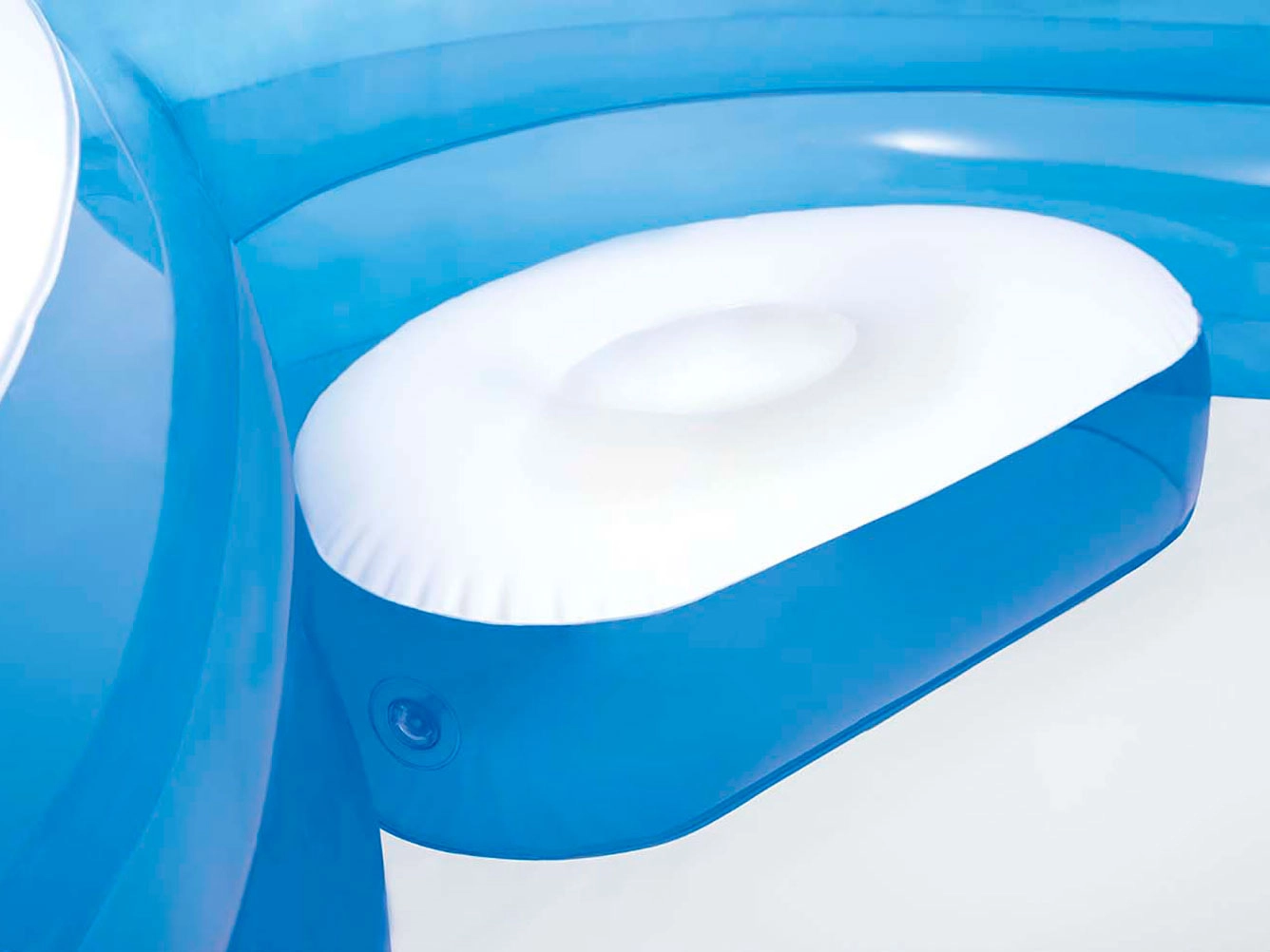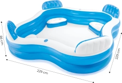 Praktiskie 2 dzērienu turētāji nodrošina, ka atspirdzinājumi vienmēr ir pa rokai, bet iztukšošanas vārsts atvieglo ātru ūdens nolaišanu. Baseinu ir viegli pārvietot, tas ātri uzpūšas un, pateicoties izmēriem 229 × 229 × 69 cm, sniedz daudz vietas atpūtai un rotaļām.