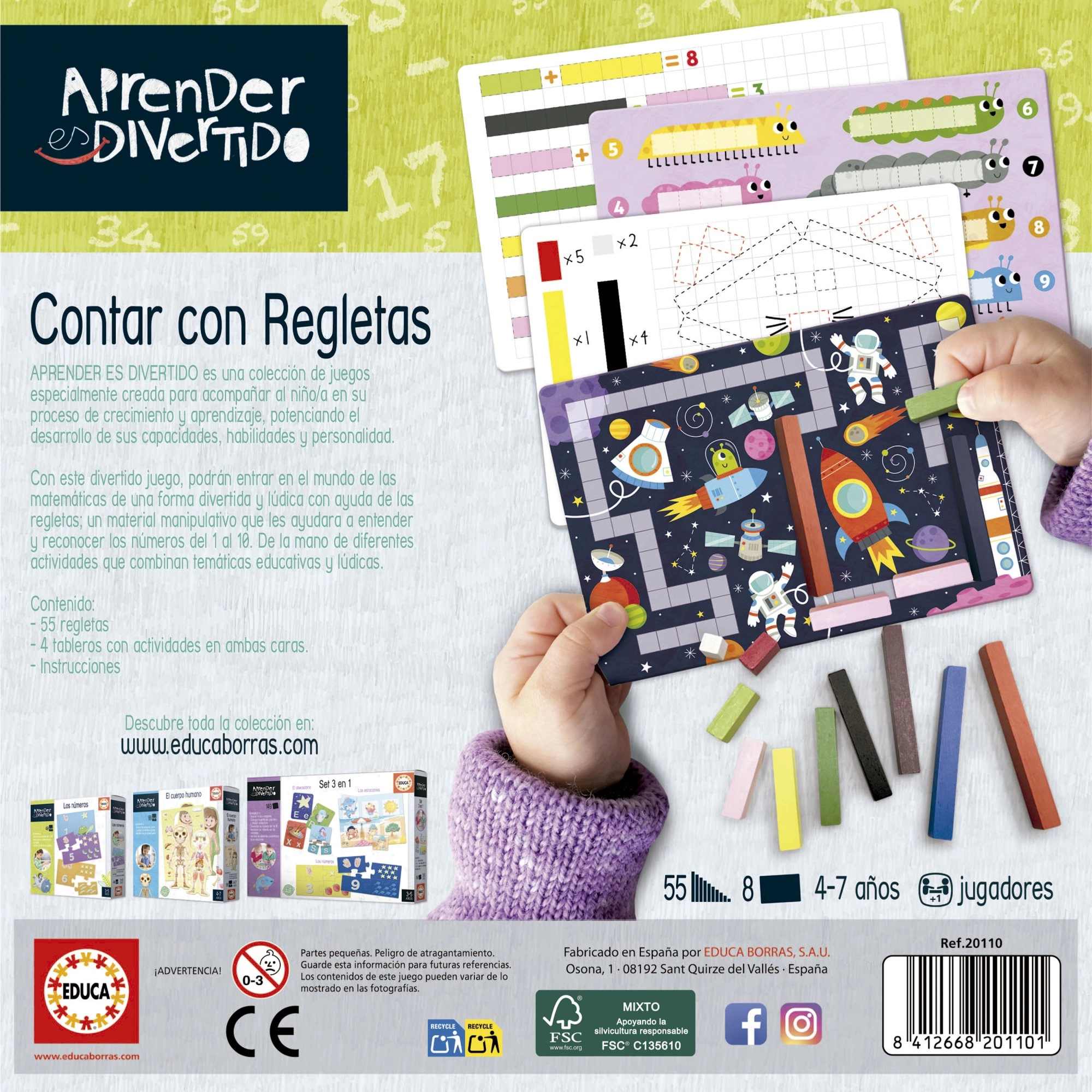 Aizraujoša izglītojoša spēle EDUCA rotaļīgā veidā palīdz bērniem attīstīt matemātiskās prasmes, izpratni par cipariem un proporcijām, kā arī veicina loģisko domāšanu un pašpārliecinātību. Pateicoties aktivitātēm uz abām planšu pusēm un krāsainajiem klucīšiem, mācīšanās pārvēršas par izklaidi.