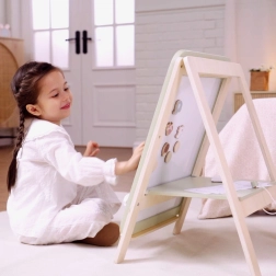 Koka PolarB tāfele ir lielisks rīks mazajiem māksliniekiem, kas veicina radošu spēli un roku prasmju attīstību. Tāfelei ir divas puses – klasiskā melnā tāfele un baltā magnētiskā virsma. Pateicoties regulējamam augstumam, tā pielāgojas bērna augumam, nodrošinot ērtu lietošanu dažādās attīstības fāzēs.