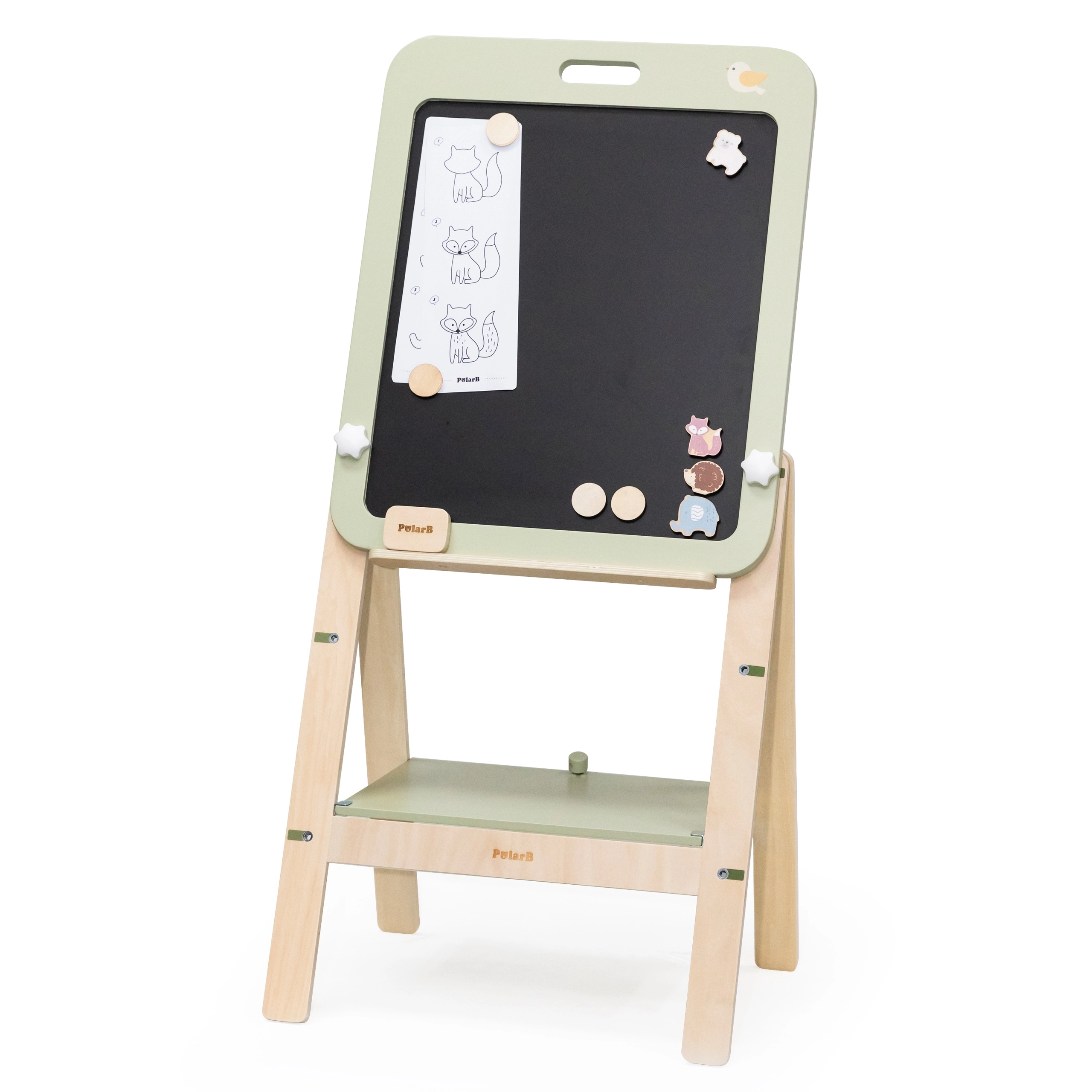 Koka augošā PolarB tāfele sniedz bērniem aizraujošu un izglītojošu pieredzi. Tāfele ir divpusēja, piedāvājot melnu virsmu krītīm un baltu magnētisku virsmu sausās tīrīšanas marķieriem. Pateicoties trim augstuma regulēšanas līmeņiem, tā ir ideāli piemērota augošiem bērniem. Pēc spēles beigām tāfeli var viegli noņemt un izmantot kā dekoru, piekārtojot pie sienas.