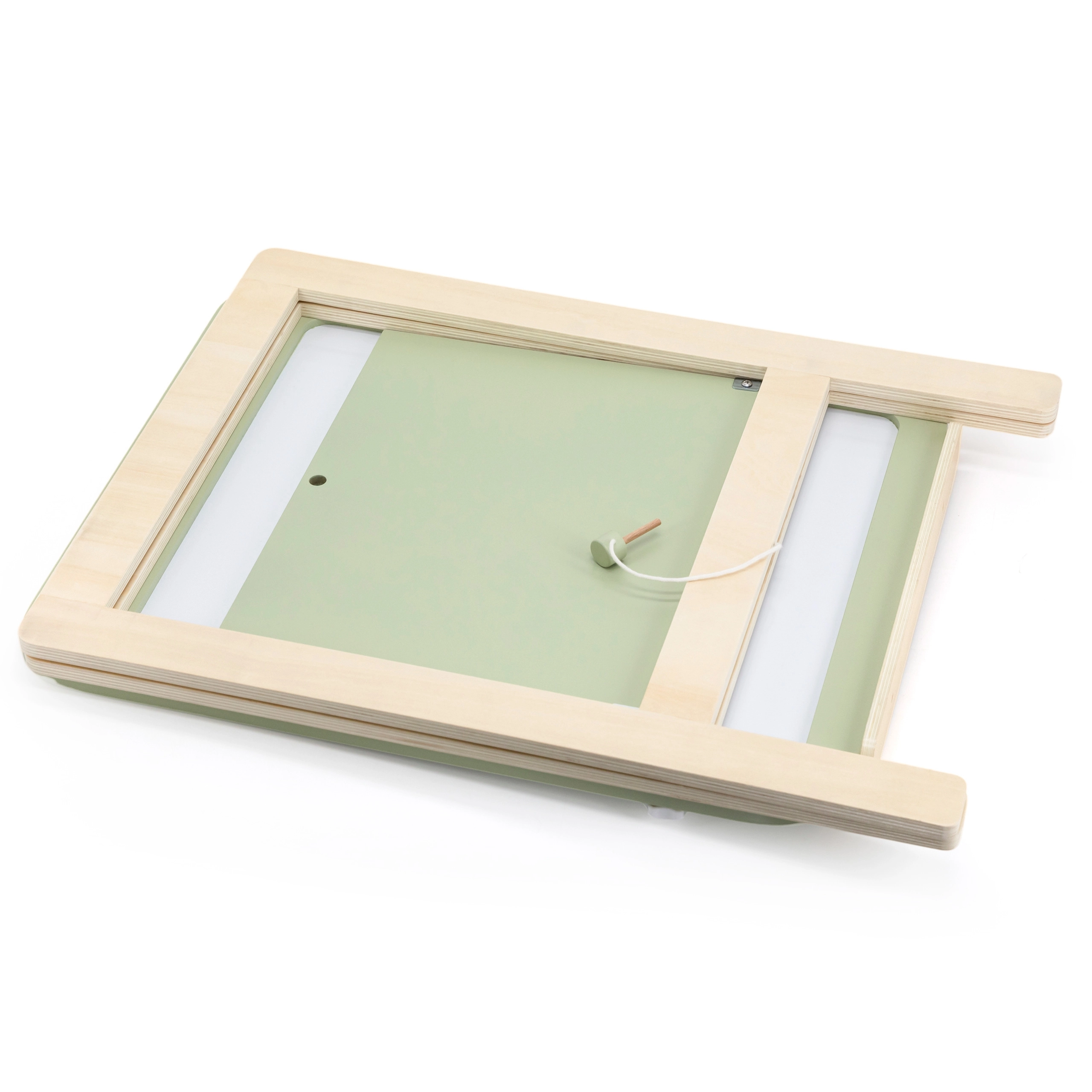 Tāfele piedāvā divpusēju virsmu – viena puse krītīm, otra – magnētiska sausās tīrīšanas marķieriem.