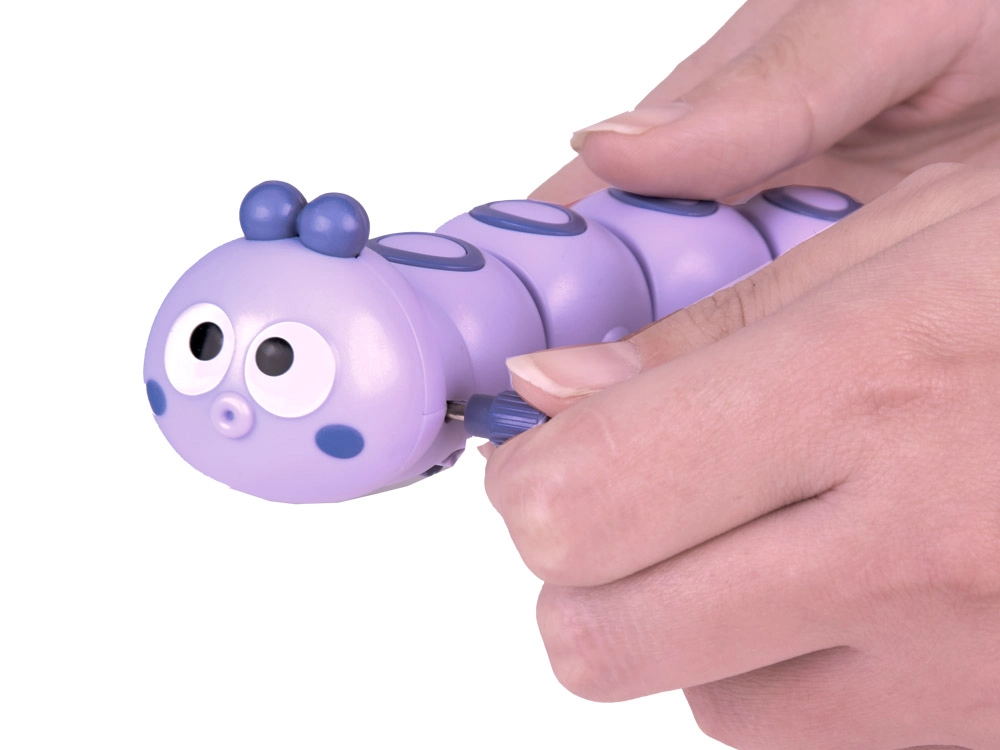 Sānu atslēdziņu pietiek pāris reizes pagriezt, un kāpurs pats sāk braukt. Bērni vēro viļņojošo kustību, apgūst cēloņa–seku sakarības un jautri dzenas pakaļ pa grīdu.