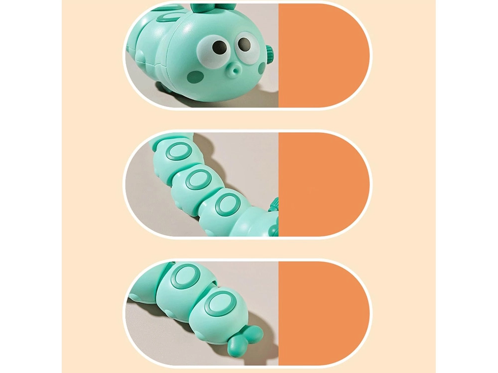 Šis mīlīgais kāpurs ar atslēdziņu pēc vienkāršas uzvilkšanas pats kustas uz priekšu un ritmiski viļņojas, kas dabiski mudina bērnus rāpot, staigāt un rotaļāties kopā. Pateicoties spilgtajām krāsām un lielajām acīm, tas ir vizuāli pievilcīgs un palīdz noturēt uzmanību.