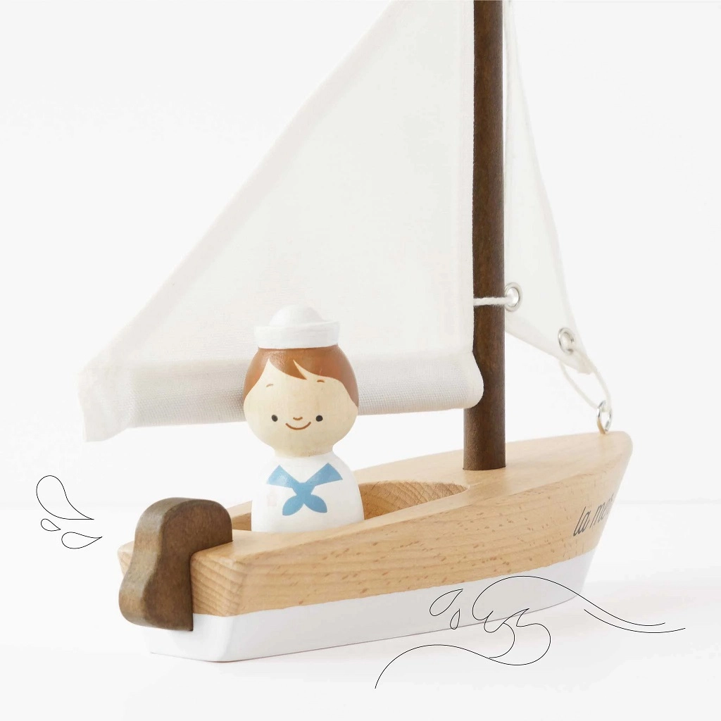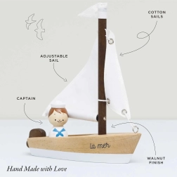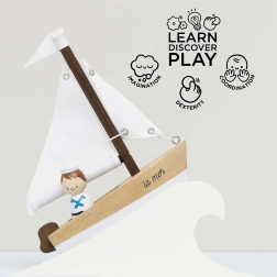 Dodieties jūrā un atklājiet jaunus piedzīvojumus ar šo brīnišķīgo burulaivu. Roku darbs no augstas kvalitātes FSC sertificēta dižskābarža koka, krāsota ar netoksiskām uz ūdens bāzes krāsām, kas ir drošas bērniem.