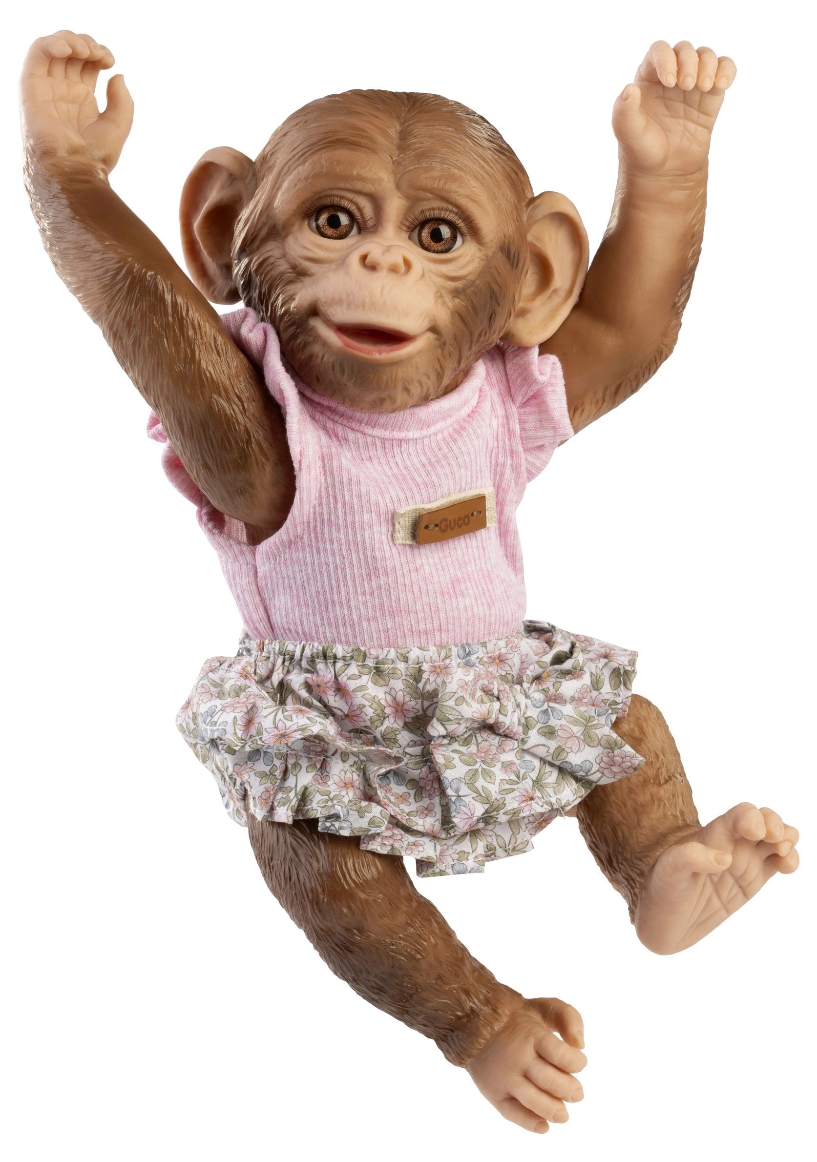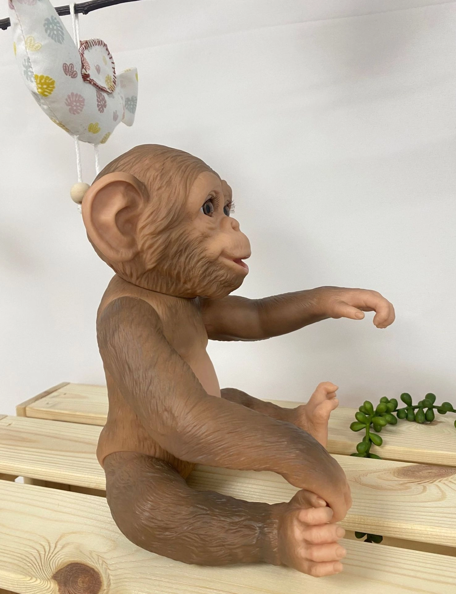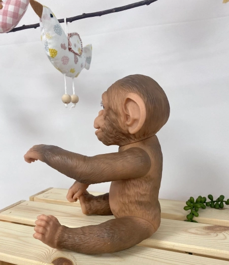 Šis reālistiskais reborn pērtiķēns apbur ar detalizētu sejas, ielocījumu un uz vinila atveidotas “spalvas” tekstūras izstrādi. Pilnībā vinila izpildījums ļauj saudzīgu peldināšanu (uzmanību skropstām), turklāt dzimums nav norādīts. Ekstremitātes ir stiprinātas locītavās, tāpēc rotaļlieta viegli notur pozas – var sēdēt, turēties vai iekārties aiz rokām vai kājām.