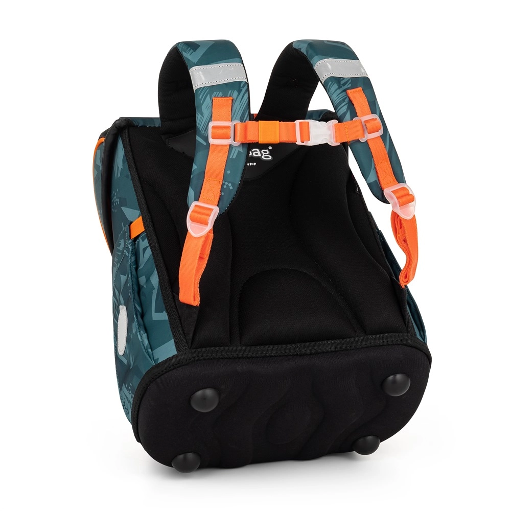 Vieglā un ergonomiskā skolas soma 1.–2. klasei ar auto motīvu piedāvā anatomiski veidotu muguras paneli, izturīgu pamatni, drošu metāla sprādzi ar atstarojošu elementu un platām, mīkstinātām lencēm ērtai un drošai nēsāšanai. Tilpums 27 l, kravnesība 8 kg, svars tikai 1,1 kg.