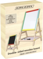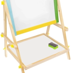 Radoša un droša 2-in-1 abpusēja tāfele mazajiem māksliniekiem – no vienas puses krīta, no otras sausās tīrīšanas un magnētiskā. Pateicoties rotējošajam mehānismam, izturīgajai koka konstrukcijai un plauktiņam piederumiem, tā veicina iztēli, mācīšanos un sīko motoriku. Komplektā viss tūlītējai lietošanai: krītiņi, marķieris un sūklis.