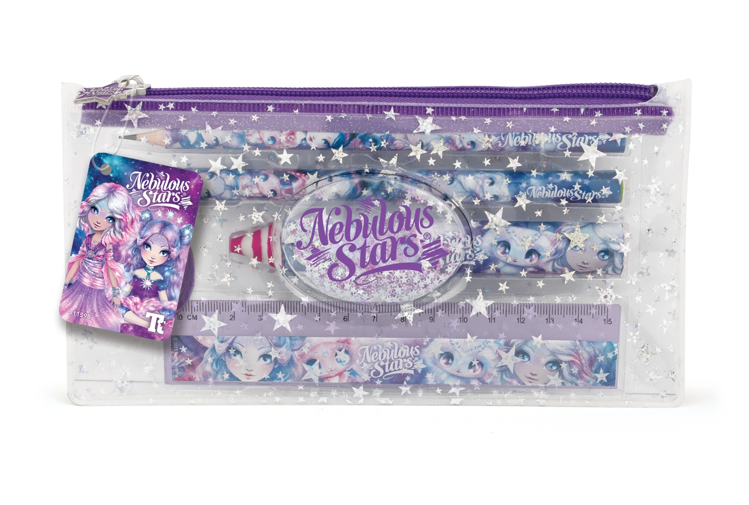 Radošais Nebulous Stars rakstīšanas komplekts iepriecinās skolēnus un mīļāko, jauku aksesuāru cienītājus. Komplektā ir penālis, varavīksnes zīmulis, zīmulis, dzēšgumija, lineāls un asināmais – viss saskaņots maģiskā stilā ērtai rakstīšanai un radošiem darbiem.