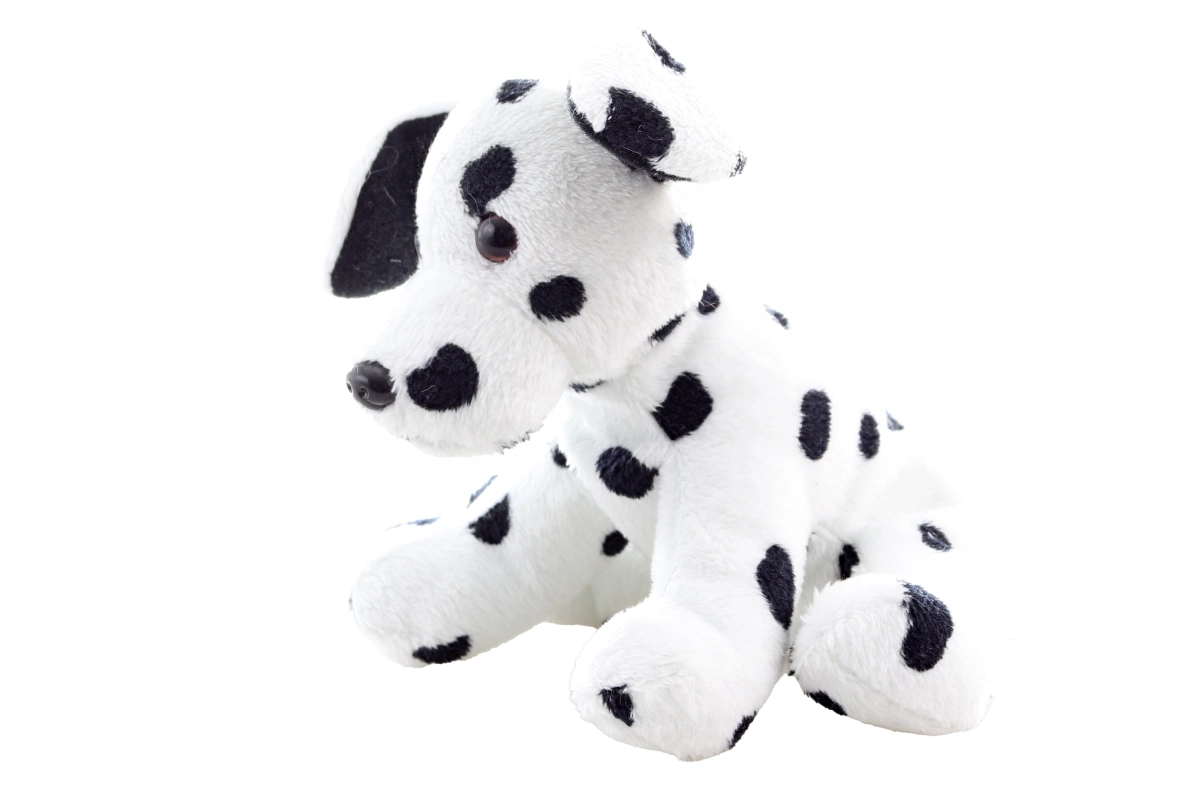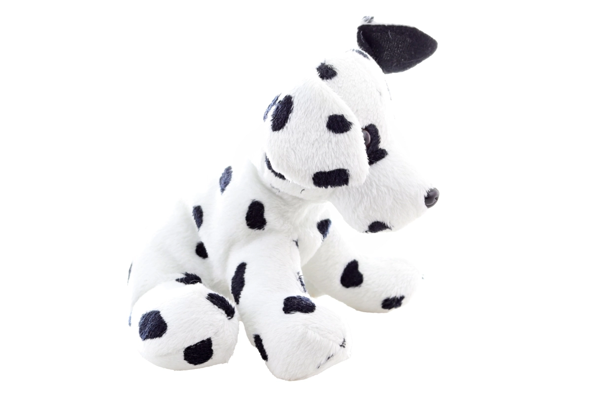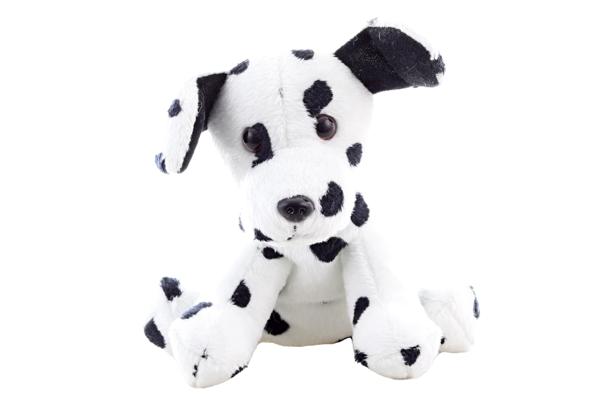 Šis pūkainais dalmācietis izceļas ar realistisku veidojumu – balts ķermenis ar melniem plankumiem, padarot to par ideālu rotaļlietu bērniem.