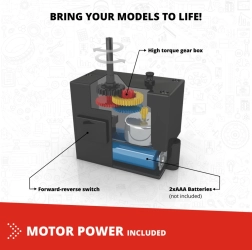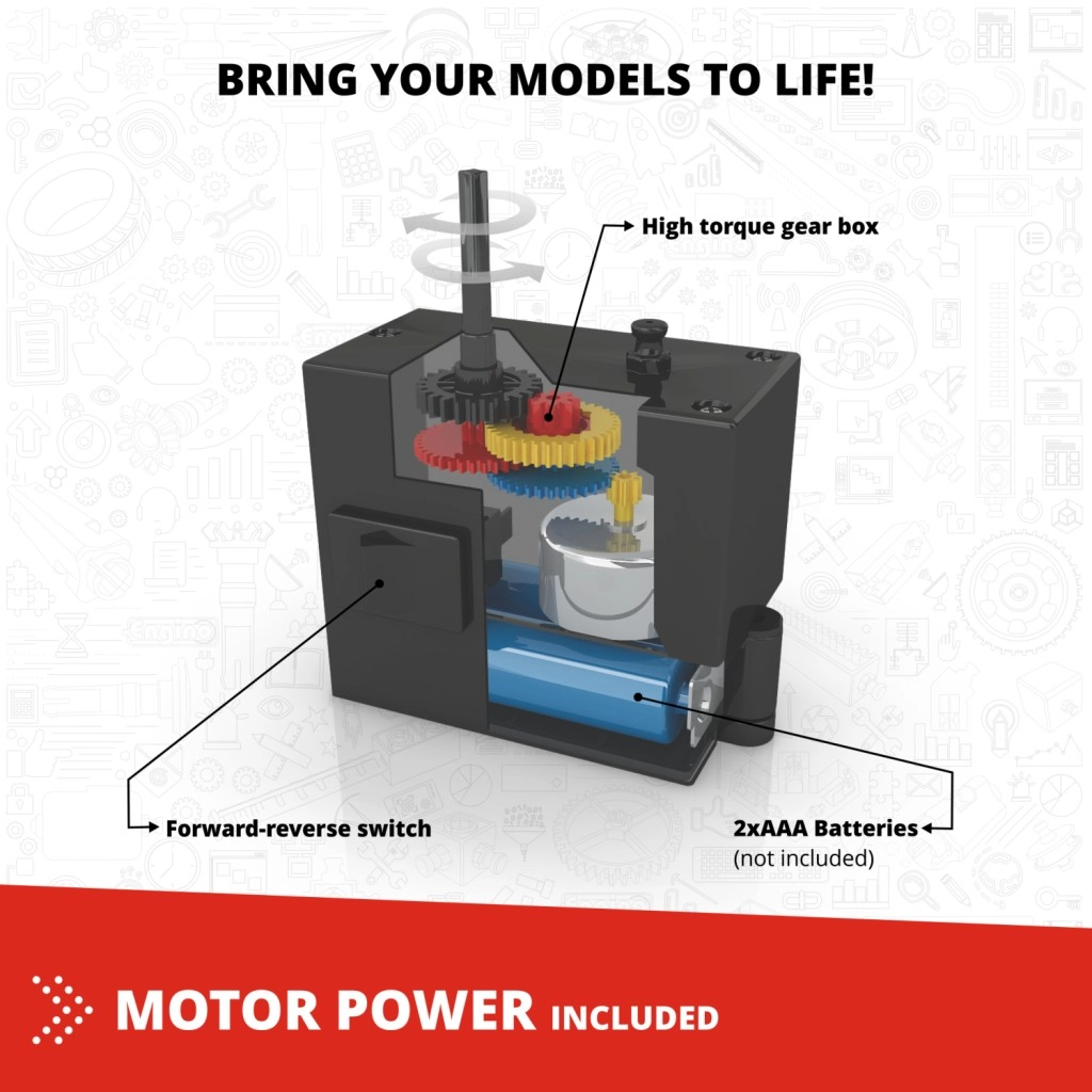 Komplektā ir motors ar kustības virziena iestatīšanu. Iedzīviniet savus modeļus un lieciet tiem braukt vai kustēties.
