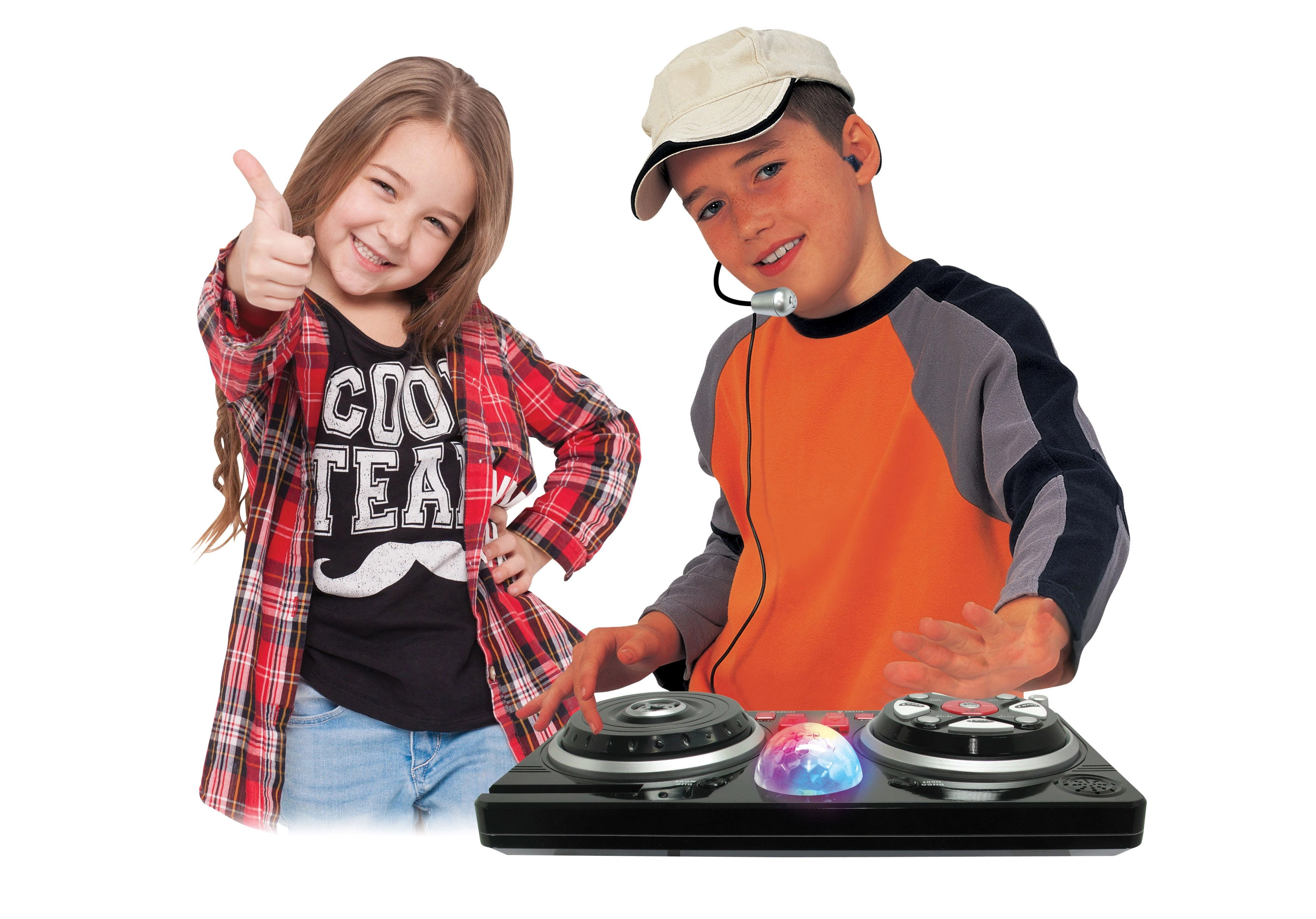 Pārvērtiet bērna istabu mazā ierakstu studijā. Šī mikserpults ar ērtu galvas mikrofonu un spīdošu disko bumbu piedāvā plašu funkciju klāstu radošai spēlei un pirmajiem muzikālajiem mēģinājumiem. Pieslēdzot tālruni vai mp3 atskaņotāju, var viegli atskaņot iemīļotas dziesmas un miksēt tās ar bītiem un efektiem.