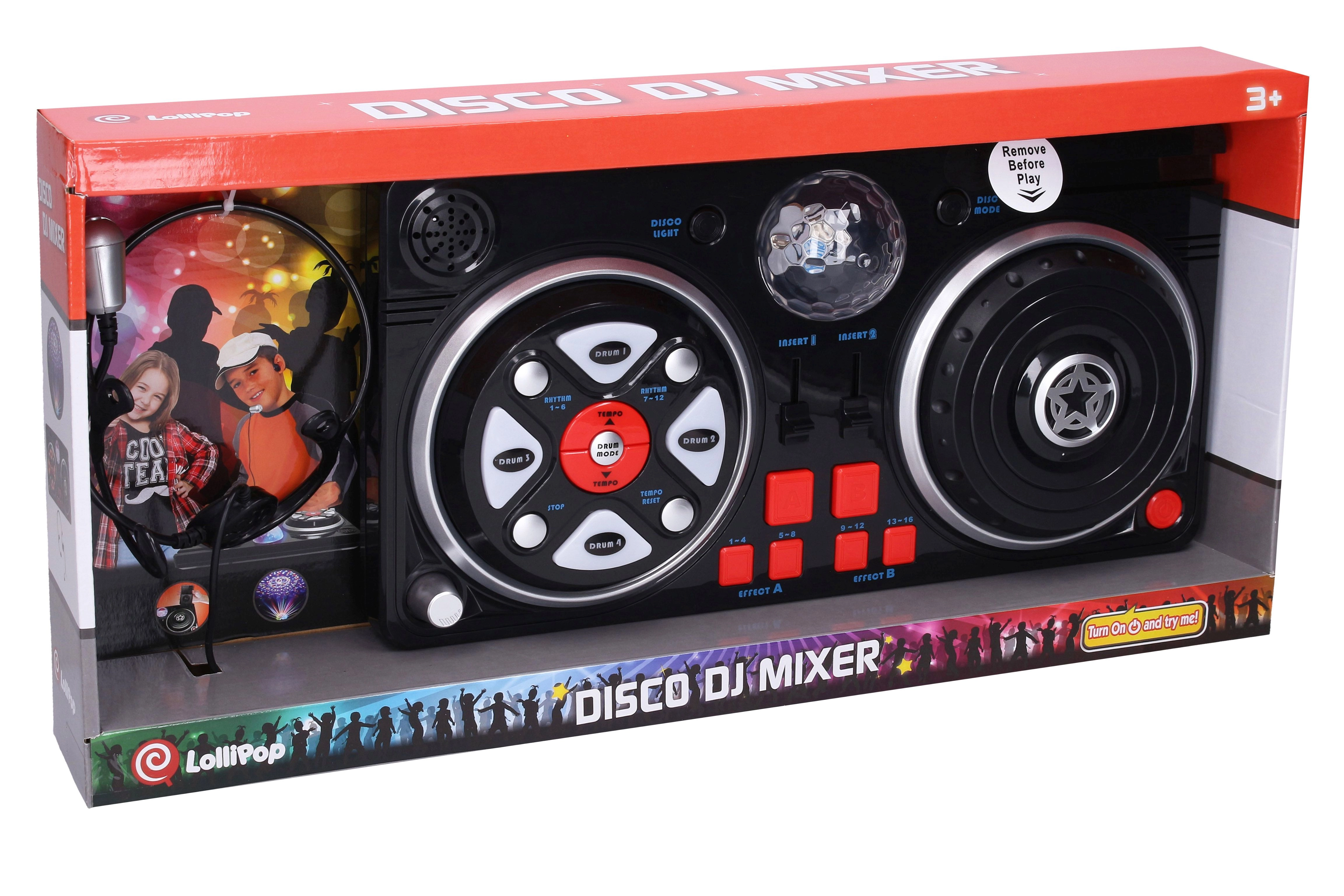 Izklaidējoša bērnu mikserpults ar galvas mikrofonu un spīdošu disko bumbu parūpēsies par lielisku mājas ballīti. Tā piedāvā gaismas un skaņas efektus, līdz pat 6 disko efektiem, 16 efektiem, 12 ritmiem un 12 bungas skaņām. Ir pieejami tempa un skaļuma iestatījumi, turētājs telefonam/mp3 un automātiska izslēgšanās enerģijas taupīšanai. Iepakojumā iekļautas 4× AA baterijas.