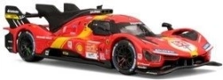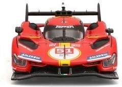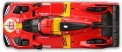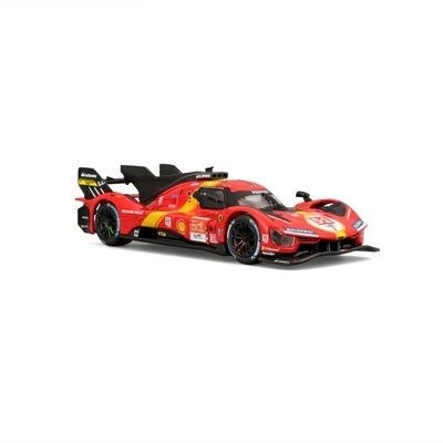 Šis detalizētais die-cast modelis uzticami atveido LMH kategorijas prototipu Ferrari 499P, kas triumfēja leģendārajās sacīkstēs 24h Le Mans 2023. Reālistiskas proporcijas, asās virsbūves līnijas un autentiski sacīkšu elementi padara šo modeli par pievilcīgu eksponātu vitrīnai.