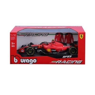 Oficiāli licencēts Bburago metāla modelis mērogā 1:18 precīzi ataino vienvietīgo sacīkšu auto Scuderia Ferrari SF-23 (2023) ar starta numuru 55. Iekļauta Karlosa Sainca figūriņa, autentiska komandas krāsojuma shēma un smalkas detaļas – ideāli kolekcionāriem un Formulas 1 līdzjutējiem.