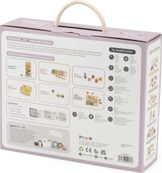 Drošs koka izpildījums ar gludām, noapaļotām malām un pasteļkrāsas aicina izzināt, trenē pacietību, koncentrēšanos un loģisko domāšanu. Komplekts ir lieliska dāvana un labs starts jēgpilnām, Montessori iedvesmotām aktivitātēm.