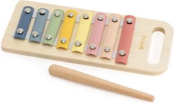 Pasteļkrāsas koka ksilofons iepazīstina bērnus ar toņu pasauli, attīsta dzirdes uztveri un ritma izjūtu, kā arī veicina acu–roku koordināciju, sitot ar vālīti.