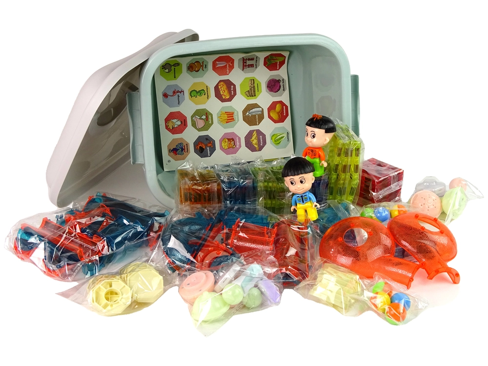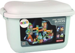 Atklājiet radošu komplektu, kas apvieno magnētiskos klucīšus un gaismojošu bumbiņu trasi vienā. Pateicoties LED elementiem un gaismojošām bumbiņām, spēle ir vēl aizraujošāka, tā attīsta sīko motoriku, radošumu un veicina loģisko domāšanu. Praktiskā aizveramā kastē atradīsiet kopumā 150 detaļas, tostarp instrukciju, figūriņas un uzlīmes.