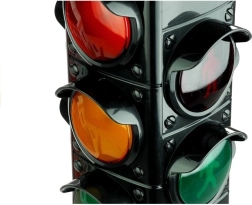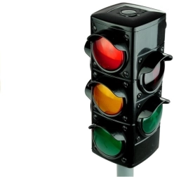 Darbīgas sarkanā, oranžā un zaļā gaisma autentiskai spēlei un labākai satiksmes noteikumu izpratnei.