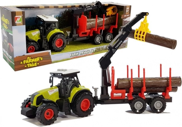 - Traktors, meža piekabe, 3 koka baļķi, rotējoša strēle (celtnis), baterijas