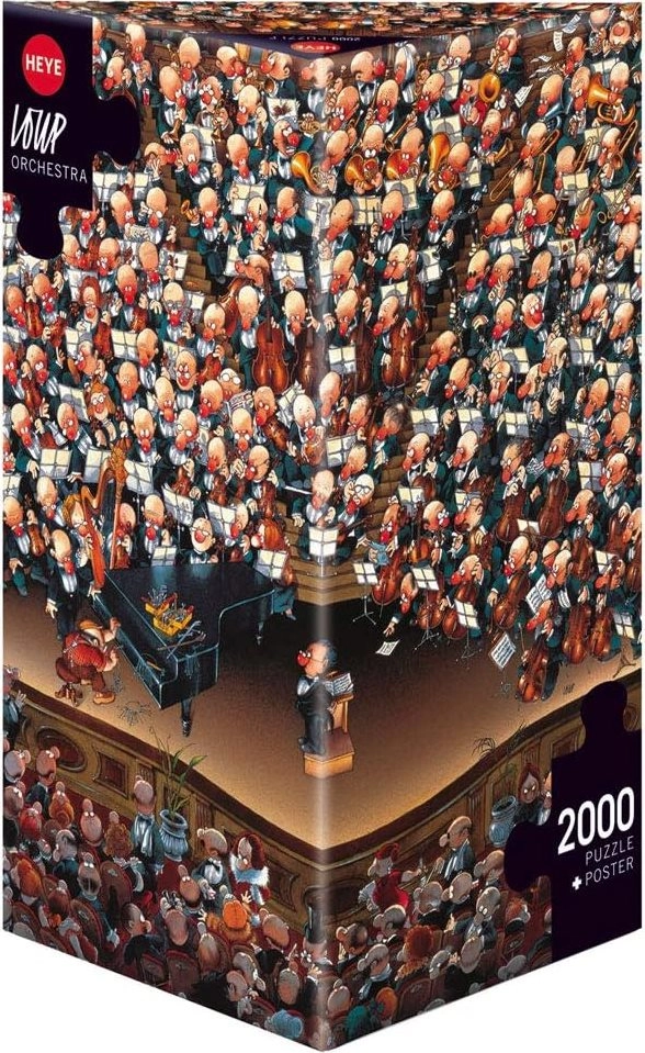 Atklājiet svaigu humoru un smalku zīmējumu puzlē HEYE Orķestris 2000 gab. no slavenā karikatūrista Lupa. Pateicoties pievienotajam plakātam, jūs viegli orientēsieties pat vissīkākajās niansēs, un gatavais attēls ar izmēriem apmēram 97 × 69 cm kļūs par jūsu interjera rotu.