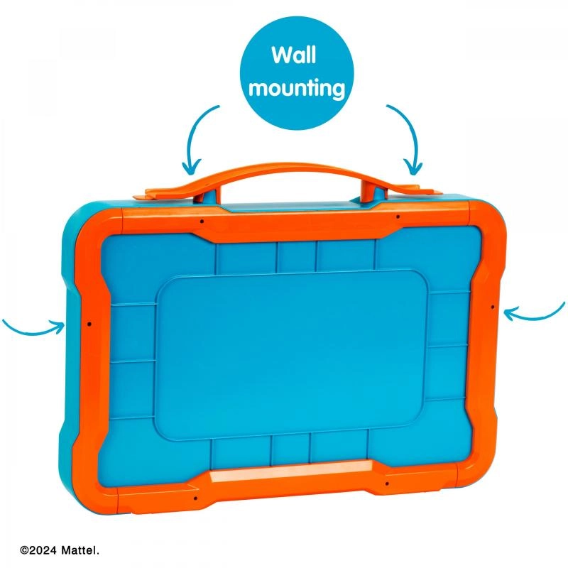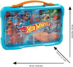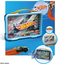 Sakārtojiet un aizsargājiet savu kolekciju ar elegantu koferi, kas darbojas kā pārnēsājama vitrīna un pie sienas stiprināma garāža. Caurspīdīgās durtiņas ar eņģēm nodrošina ātru piekļuvi un lielisku modeļu prezentāciju, savukārt spilgti izgaismotais HOT WHEELS logotips piešķir visai kolekcijai pievilcīgu izskatu.