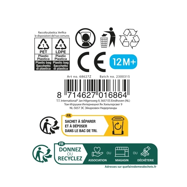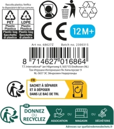 Bumbiņa ir piemērota bērniem no 12 mēnešu vecuma, nodrošina drošu izklaidi un attīsta motorikas prasmes.