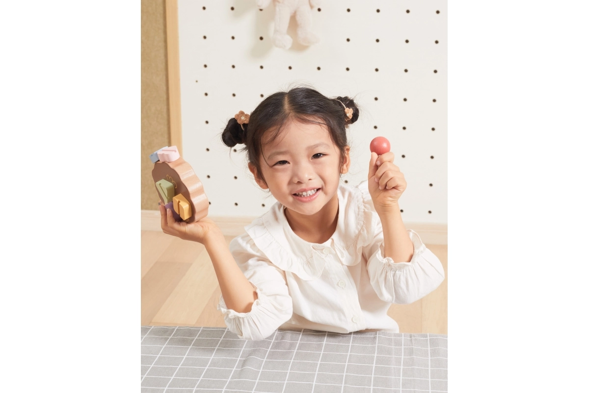Rotaļlieta attīsta bērnu radošumu un loģisko domāšanu. Tā māca atpazīt formas un krāsas.