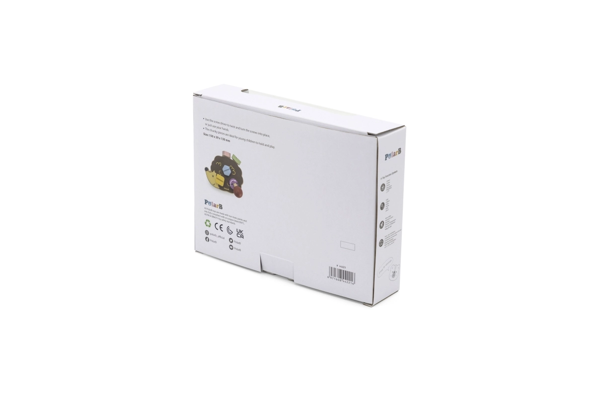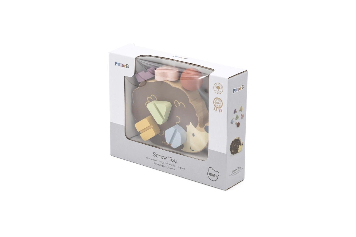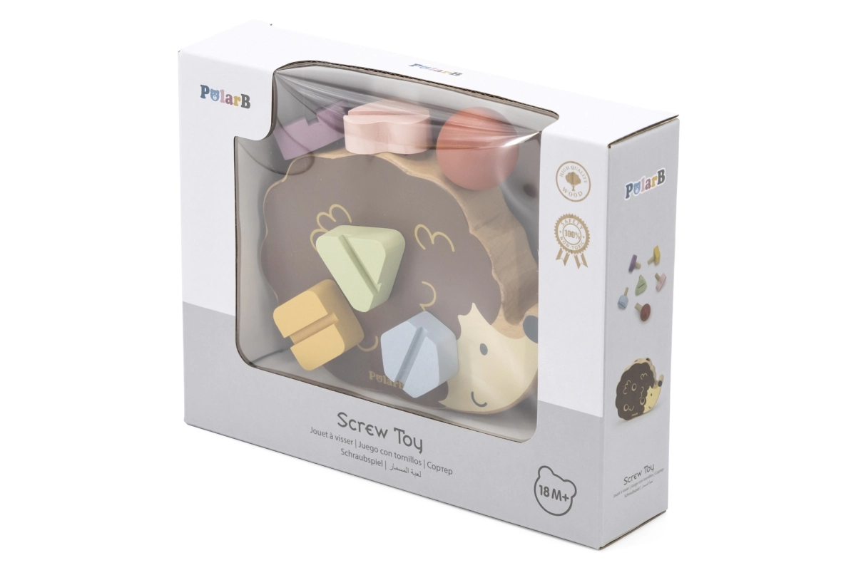 VIGA PolarB koka rotaļlieta Ezītis ar skrūvēm piedāvā unikālu rotaļlietas un mācību līdzekļa apvienojumu. Skaisti izstrādātais ezītis ļauj bērniem trenēt savas motoriskās iemaņas ar piecām dažādu krāsu un formu skrūvēm. Katru skrūvi var viegli ieskrūvēt ezītī, izmantojot īpašu skrūvgriezi, kas ir iekļauts komplektā.