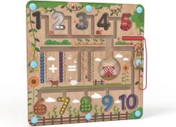 Magnētiskā spēļu tāfele Matemātika 2Kids Toys ir ideāls palīglīdzeklis pirmajiem soļiem skaitļu pasaulē. Krāsainas bumbiņas, skaitļu celiņi un saimniecības tematikas ilustrācijas dabiski ved bērnus uz skaitīšanas, šķirošanas un salīdzināšanas atklāšanu. Izturīga caurspīdīga plāksne notur visas detaļas iekšpusē, tāpēc spēlēšanās ir droša un sakopta.