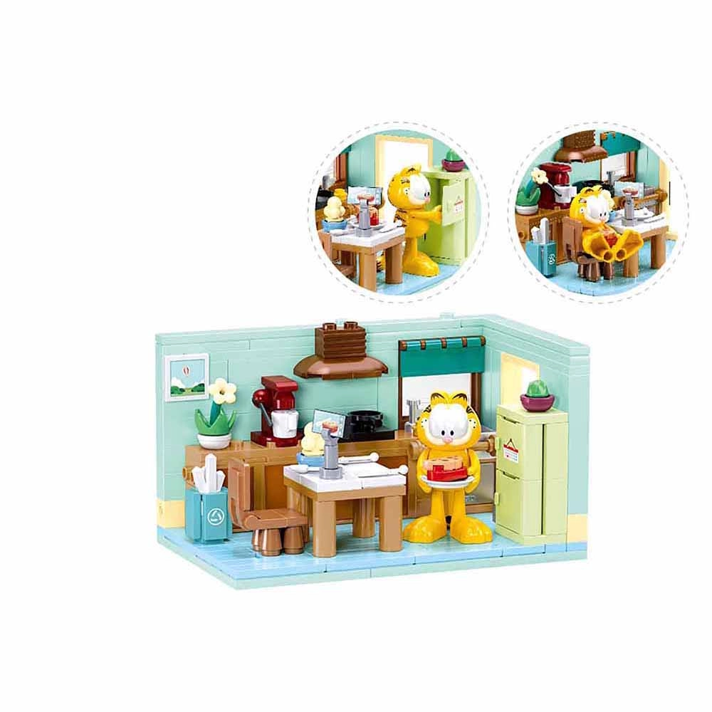 Viegli kombinē ar LEGO, Cobi un Mega Bloks. Savieno virtuvi ar citām ainām un veido plašāku Garfield pasauli.