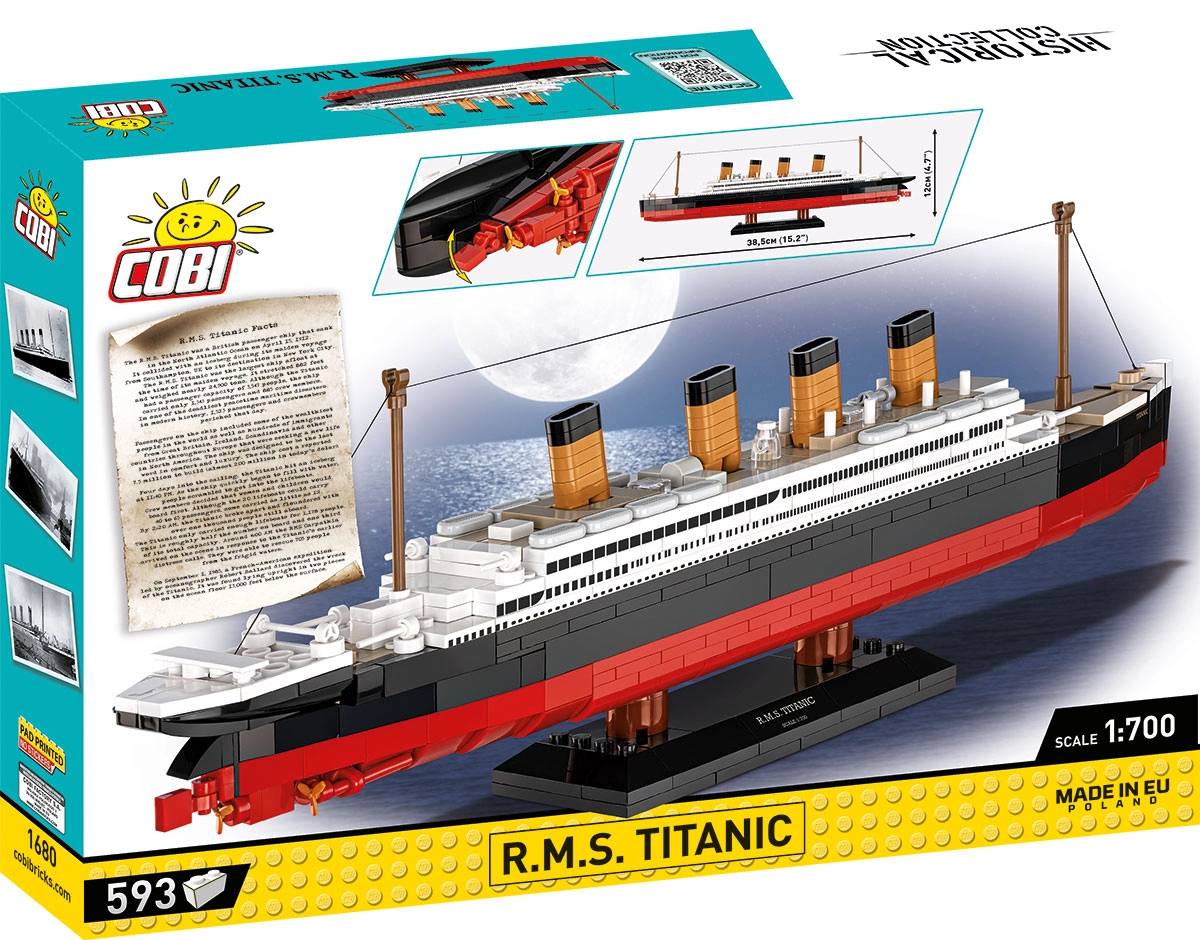 Būvēšana ir vienkārša un aizraujoša, pateicoties intuitīvām attēlu instrukcijām. Konstruktors ražots ES, ir saderīgs ar citu zīmolu klucīšiem un piemērots būvētājiem no 7 gadu vecuma. Komplektā ir arī statīvs ar kuģa nosaukumu, kas padarīs Titāniku par izteiksmīgu rotājumu plauktam, darba vietai vai bērnu istabai.