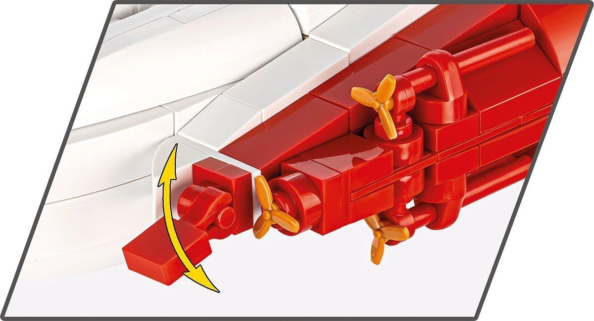 Precīzas korpusa formas, medicīniskie krusti un krāsainas joslas ir apdrukātas tieši uz klucīšiem – bez uzlīmēm. Iekļauti kustīgi krāni, kuģa dzenskrūves un stūre.