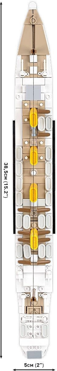 HMHS BRITANNIC, Titanika māsu kuģis, kas Pirmā pasaules kara laikā tika pārbūvēts par hospitāļa kuģi, tagad atdzīvojas detalizētā konstruktora veidolā. 38,5 cm garais un 12 cm augstais modelis uzticami ataino ikonisko kuģa siluetu un medicīnisko marķējumu. Pateicoties noturīgām apdrukām bez uzlīmēm, izskats saglabājas nemainīgs arī pēc gadiem ilgas izvietošanas un spēlēšanās.