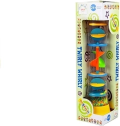 Spirāle un krāsainās bumbiņas pamatnē veicina sīko motorisko prasmju attīstību mazajiem bērniem.