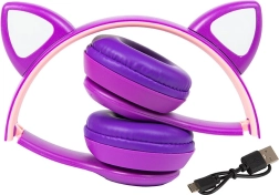 Mīlīgas un ērtas bērnu bezvadu austiņas ar kaķa ausīm un LED RGB apgaismojumu iepriecinās mazos klausītājus. Tās piedāvā Bluetooth 5.0 ar darbības rādiusu līdz 10 m, vieglu salokāmu konstrukciju un iebūvētu akumulatoru brīvai klausīšanai bez vadiem. Pateicoties FM radio, microSD slotam un vadības pogām, tās darbojas arī bez telefona.