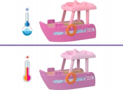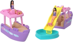 Šis košais spēļu komplekts sniedz bērniem no 4 gadu vecuma mini ūdens piedzīvojumus. Laiva rozā–violetos toņos ar augšējo klāju un sēdvietām, kabīni un iespēju to atvērt spēļu režīmā ar koši dzeltenu slidkalniņu un tirkīza sirds formas baseinu. Komplektā ir mini lelle peldkostīmā, gatava doties brīvdienu kruīzā.