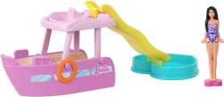 Atklājiet MINI BARBIE LAND burvību ar jauku mini laiviņu, kas acumirklī pārvēršas jautrā ūdens parkā. Komplektā ietilpst laiva ar noņemamu slidkalniņu un tirkīza sirds formas baseinu, kā arī mini lelle. Ideāli piemērots ceļošanai, kolekcionēšanai un radošai spēlei. Kompakti izmēri, pārdomātas detaļas un funkcionāls slidkalniņš nodrošina daudz iztēles pilnas izklaides.