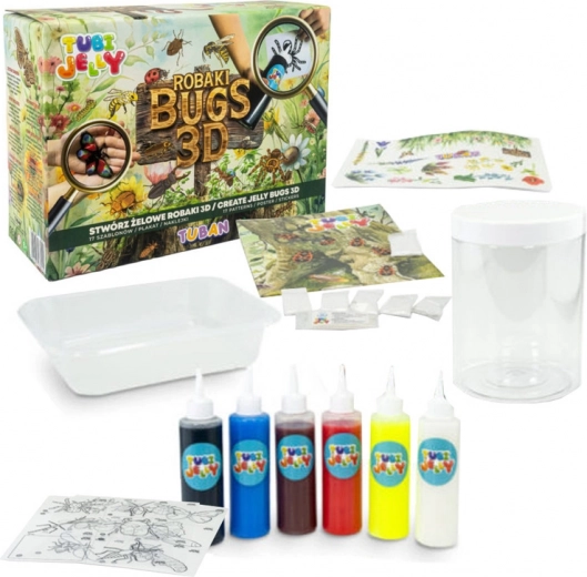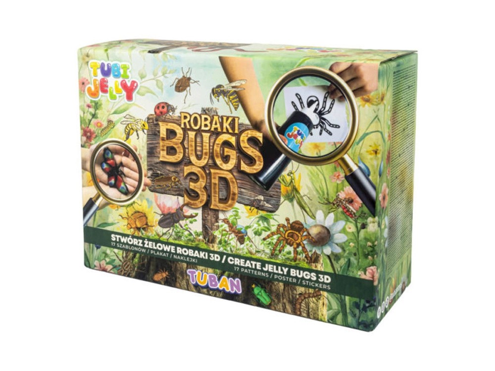 Atklājiet radošuma burvību ar Tubi Jelly Kukaiņi 3D. Izmantojot 17 veidnes, veidojiet vienkāršus un radošus želejveida kukaiņus. Iepakojumā atradīsiet arī tukšu plēvi sava unikālā kukaiņa izstrādei. Speciāls aktivators pārvērš šķidro gelu cietā figūriņā.