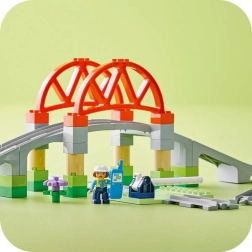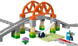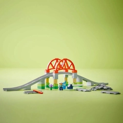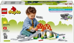 LEGO DUPLO Dzelzceļa tilta un sliežu komplekts bērniem nodrošina paplašinājumu viņu interaktīvajām dzelzceļa spēlēm. Šī radošā rotaļlieta ļauj pievienot paceļamu tiltu un pagarināt maršrutu ar astoņām taisnām sliedēm, kuras var savienot ar jebkuru LEGO DUPLO dzelzceļa komplektu. Bērni no divu gadu vecuma var spēlēties mašīnista lomā, kas veicina redzes un roku koordinācijas attīstību.