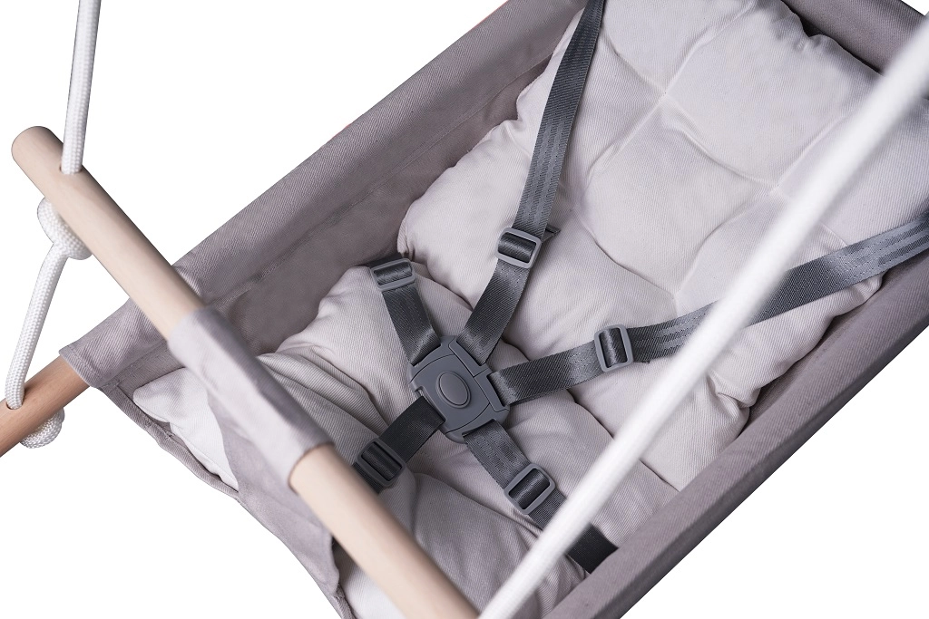 Izgatavotas no 100% kokvilnas un koka balstiem, šūpoles nodrošina drošību, pateicoties drošības siksnām.