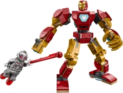 Uzcel ikonisku cīņu starp labo un ļauno: Dzelzs cilvēks varenā mehā pret bīstamo Ultronu. Meham ir kustīgas rokas, kājas un pirksti, uz labās rokas divkāršs detaļu šāvējs un torsā atverama kabīne Dzelzs cilvēka minifigūriņai. Lieliska izvēle bērniem, kuri mīl supervaroni, darbību un būvēšanu.