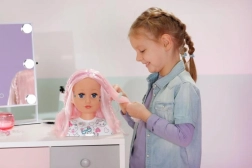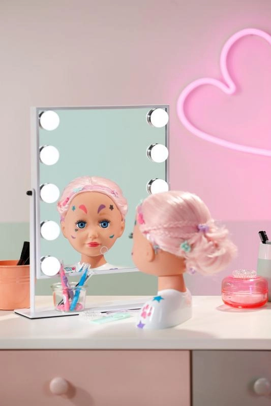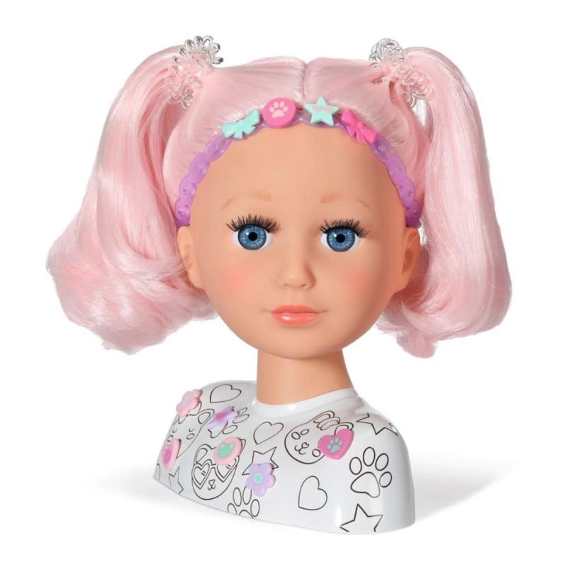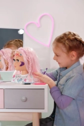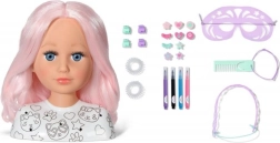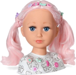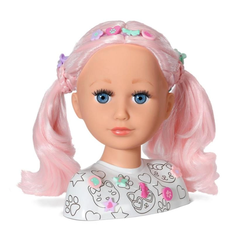 Šī radošā ķemmējamā galva ir ideāla mazajām stilistēm un grimētājām. Garie rozā mati no augstas kvalitātes neilona lieliski tur formu un ir perfekti ķemmēšanai, copēm un pīnēm. Ar pievienotajiem flomāsteriem un šablonu var viegli radīt oriģinālu make-up un jautrus motīvus uz sejas.