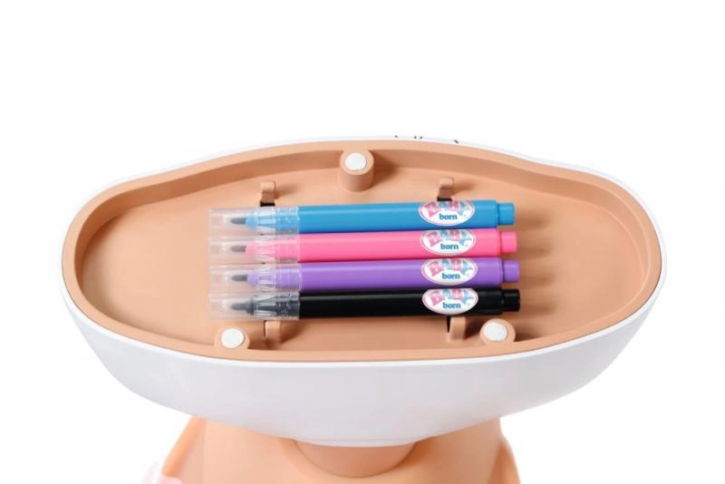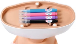 Veidojiet uz lelles sejas unikālus rakstus un make-up, izmantojot 4 krāsainus flomāsterus un pievienoto šablonu – ātri, viegli un bez fantāzijas ierobežojumiem.