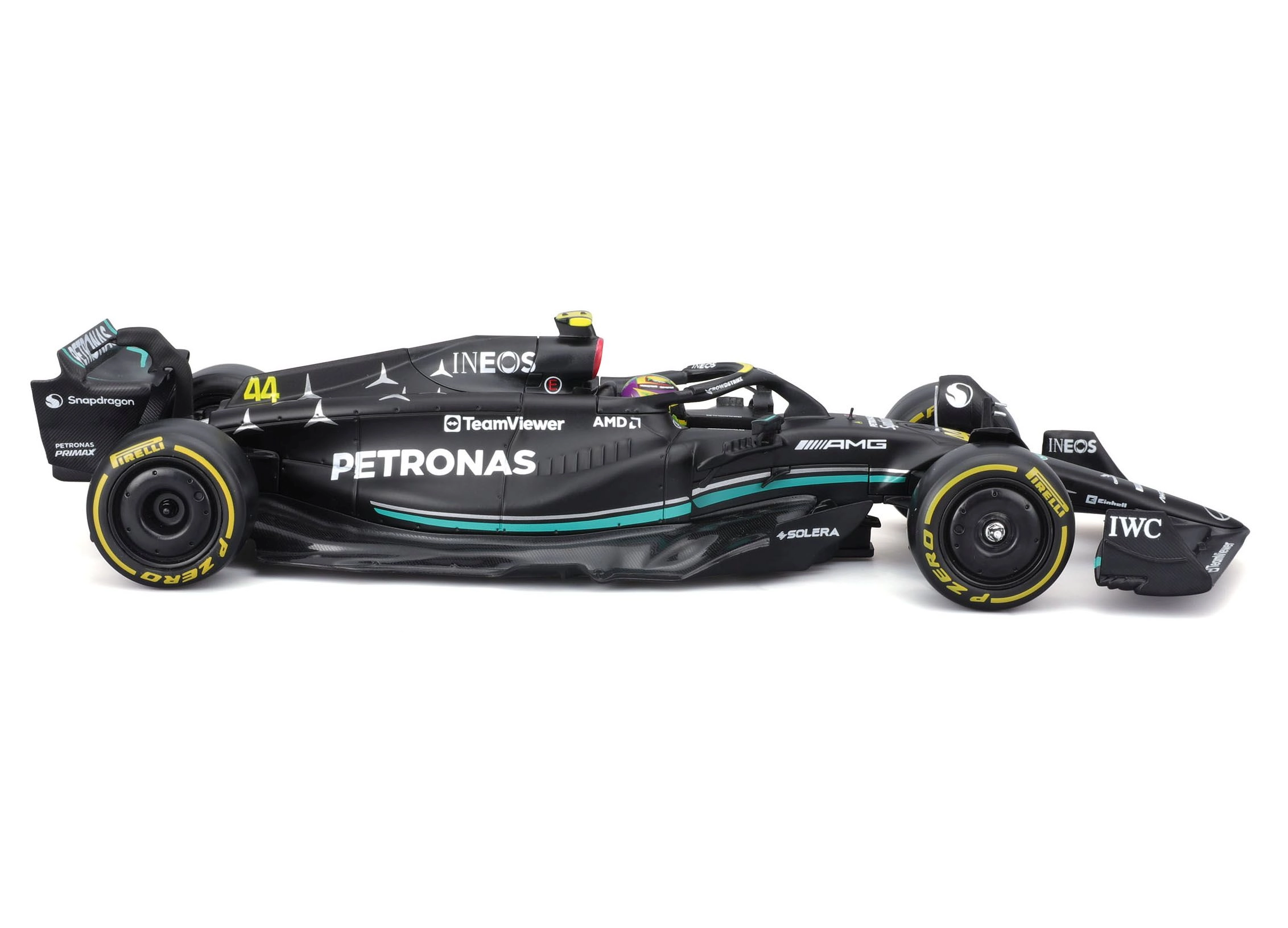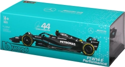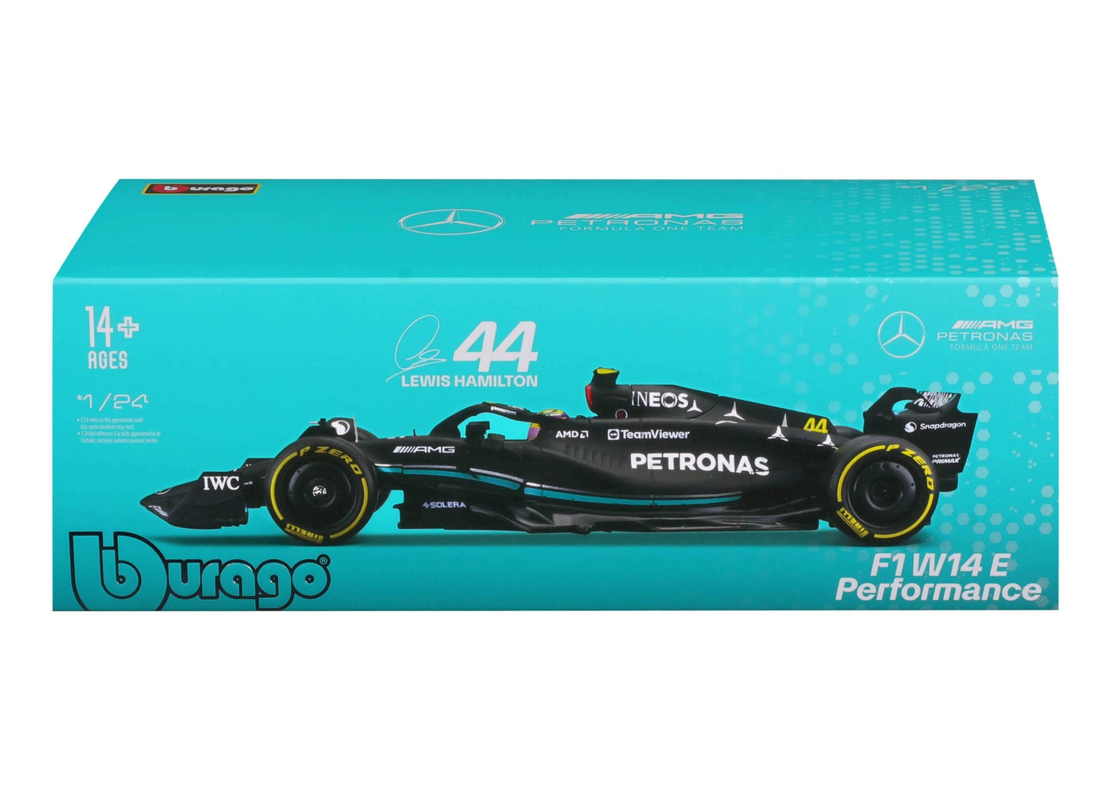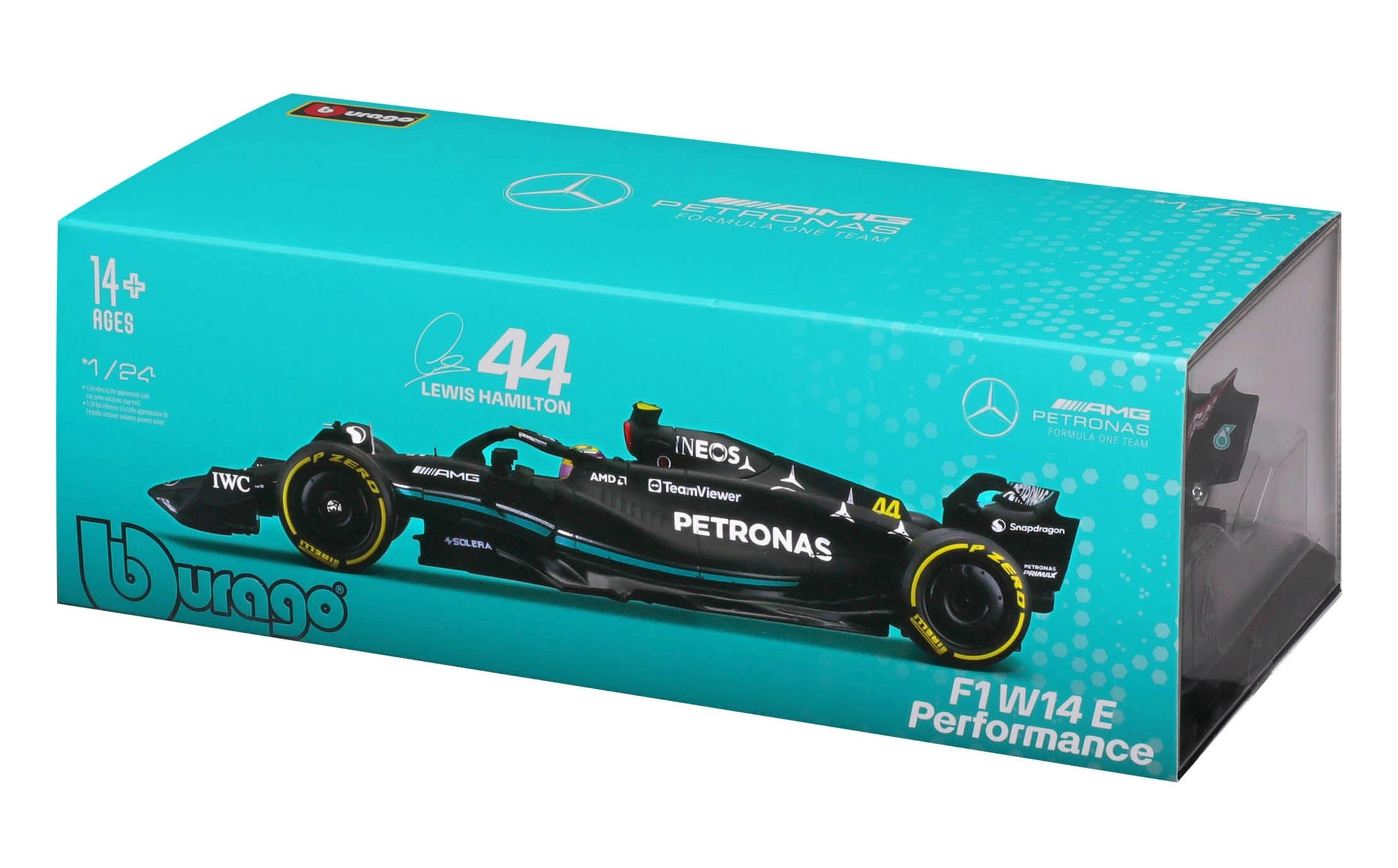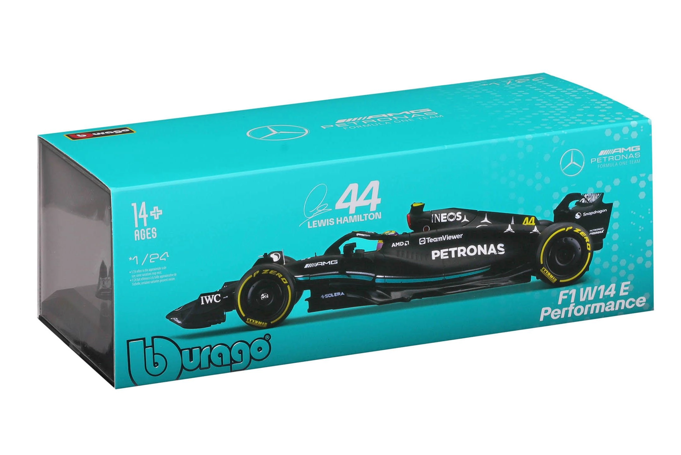 Izbaudiet ikonisko monopostu W14 E Performance (2023) komandas MERCEDES‑AMG PETRONAS izpildījumā ar starta numuru 44. Mēroga 1:24 modelis uzticami ataino virsbūves, spārnu, halo un raksturīgā krāsojuma detaļas. Ideāli piemērots vitrīnām, rakstāmgaldam vai kā dāvana motosporta faniem.