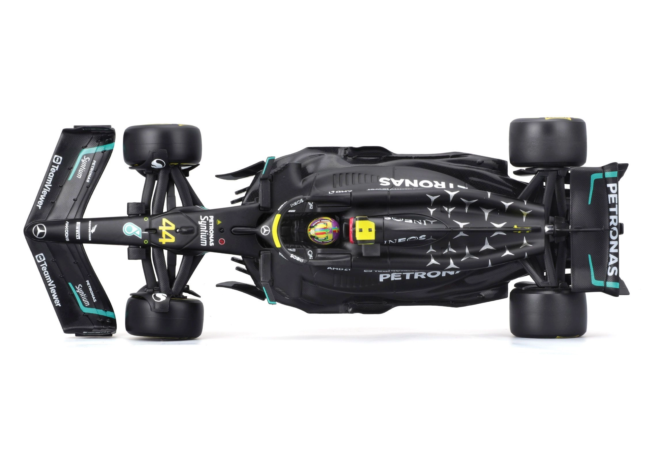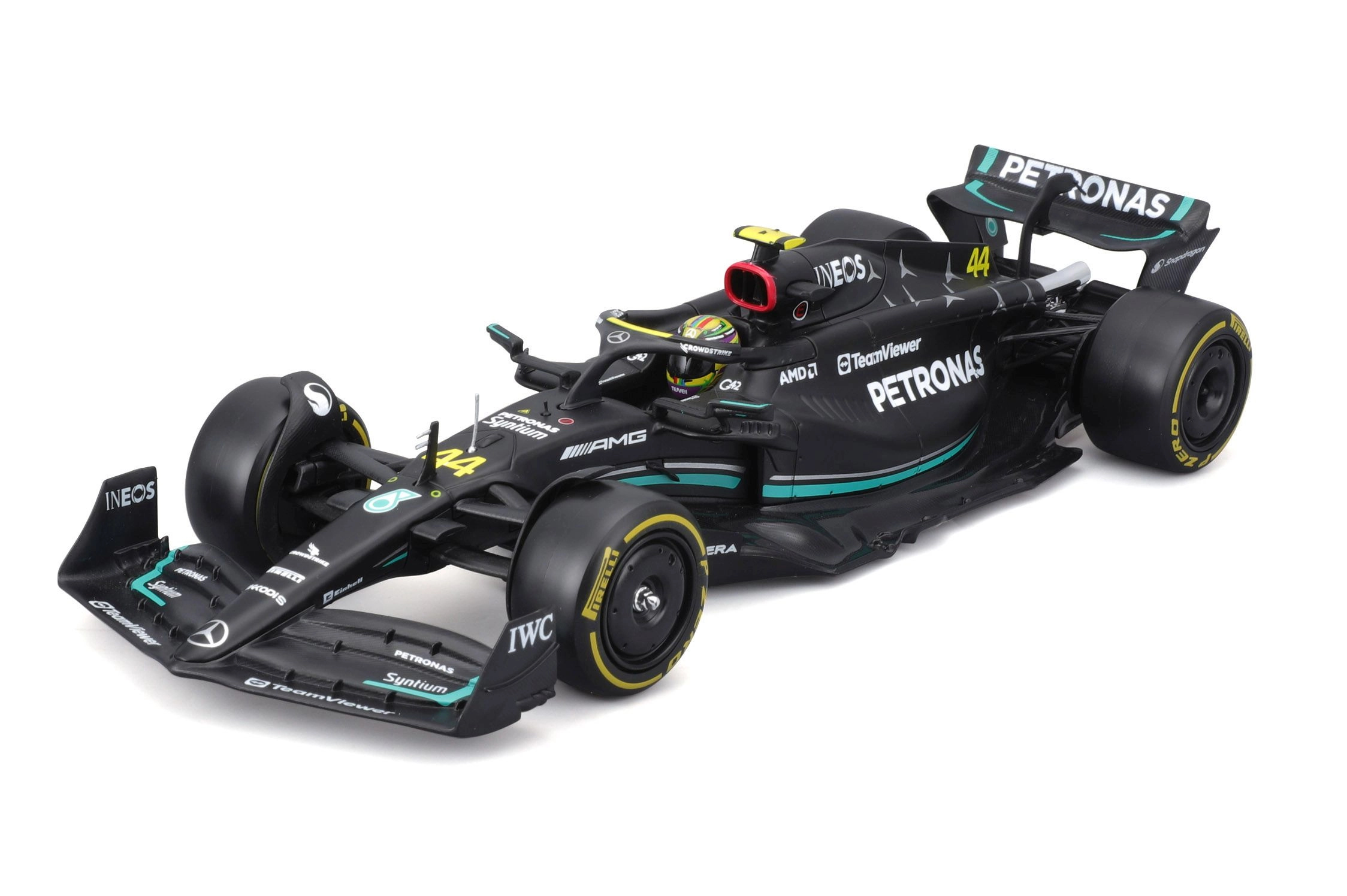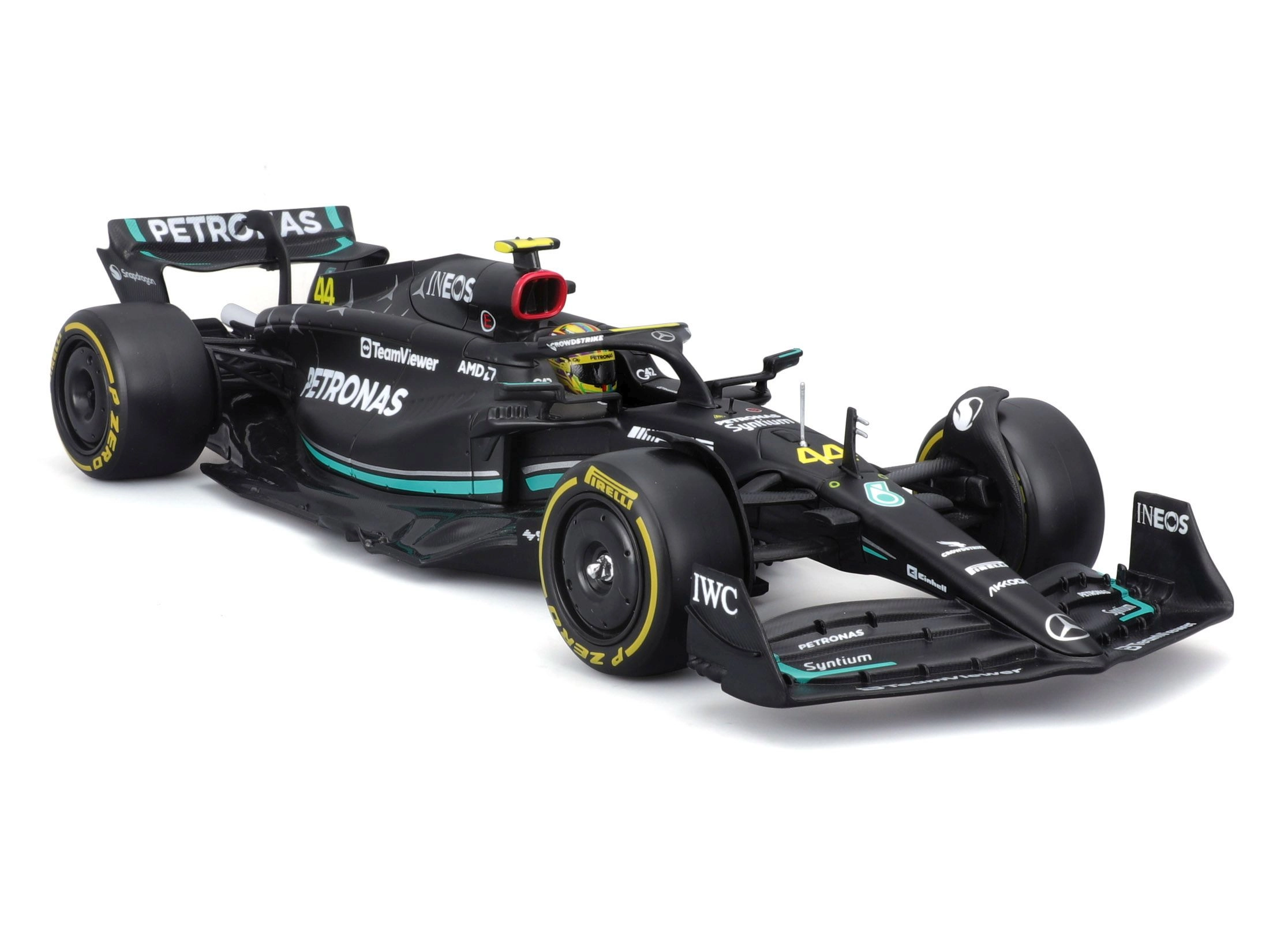 Izbaudiet ikonisko monopostu W14 E Performance (2023) komandas MERCEDES‑AMG PETRONAS izpildījumā ar starta numuru 44. Mēroga 1:24 modelis uzticami ataino virsbūves, spārnu, halo un raksturīgā krāsojuma detaļas. Ideāli piemērots vitrīnām, rakstāmgaldam vai kā dāvana motosporta faniem.