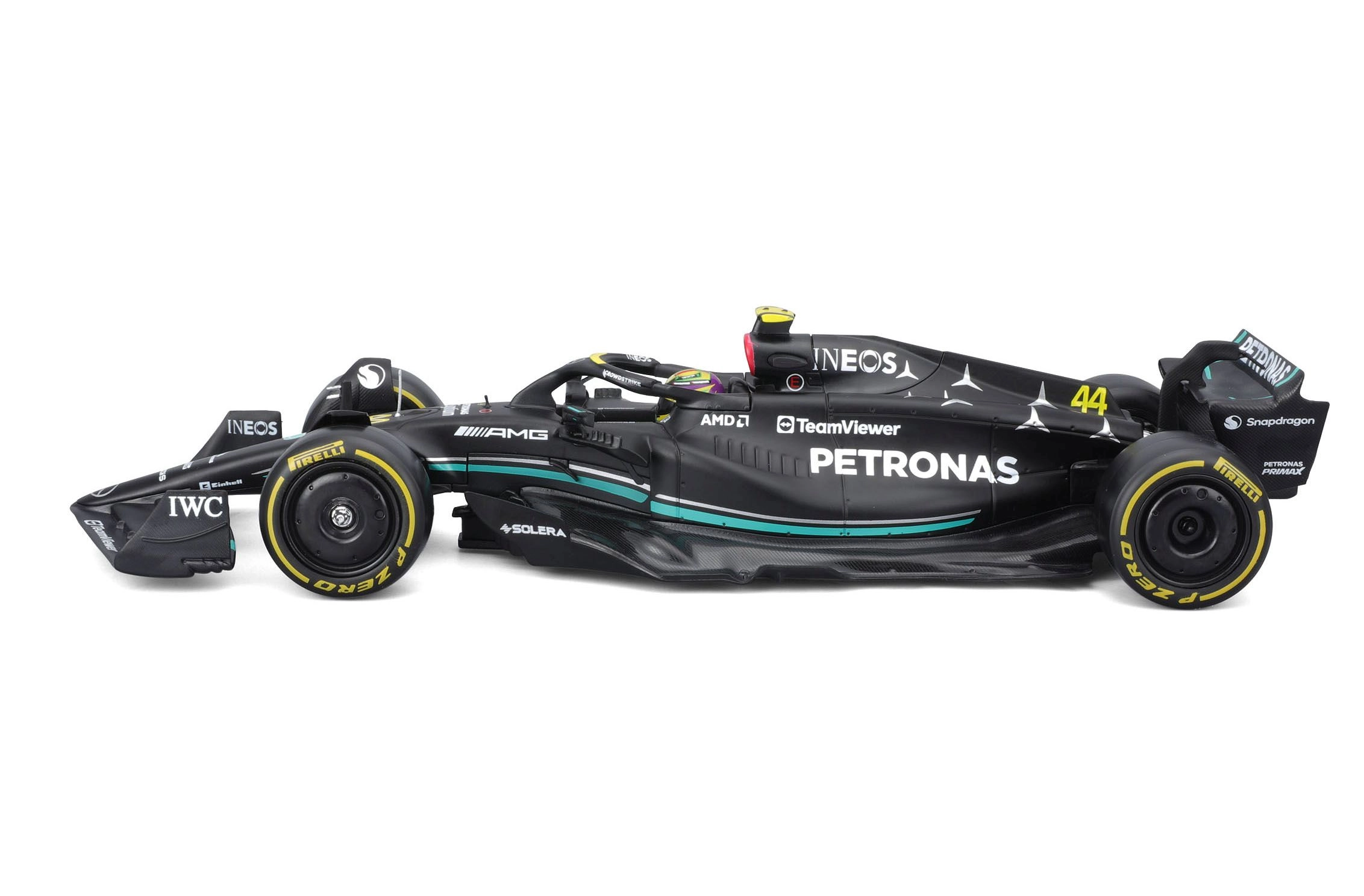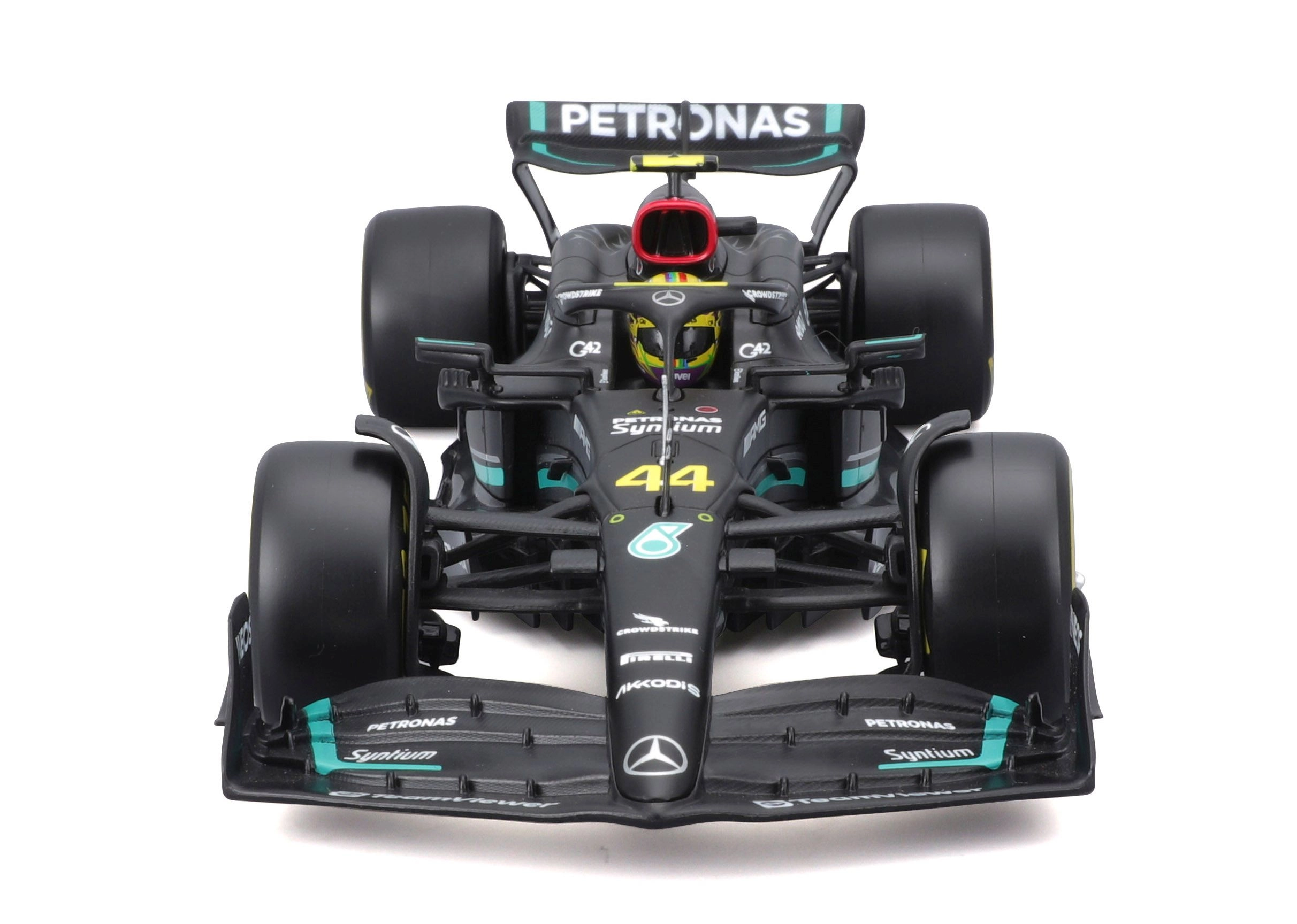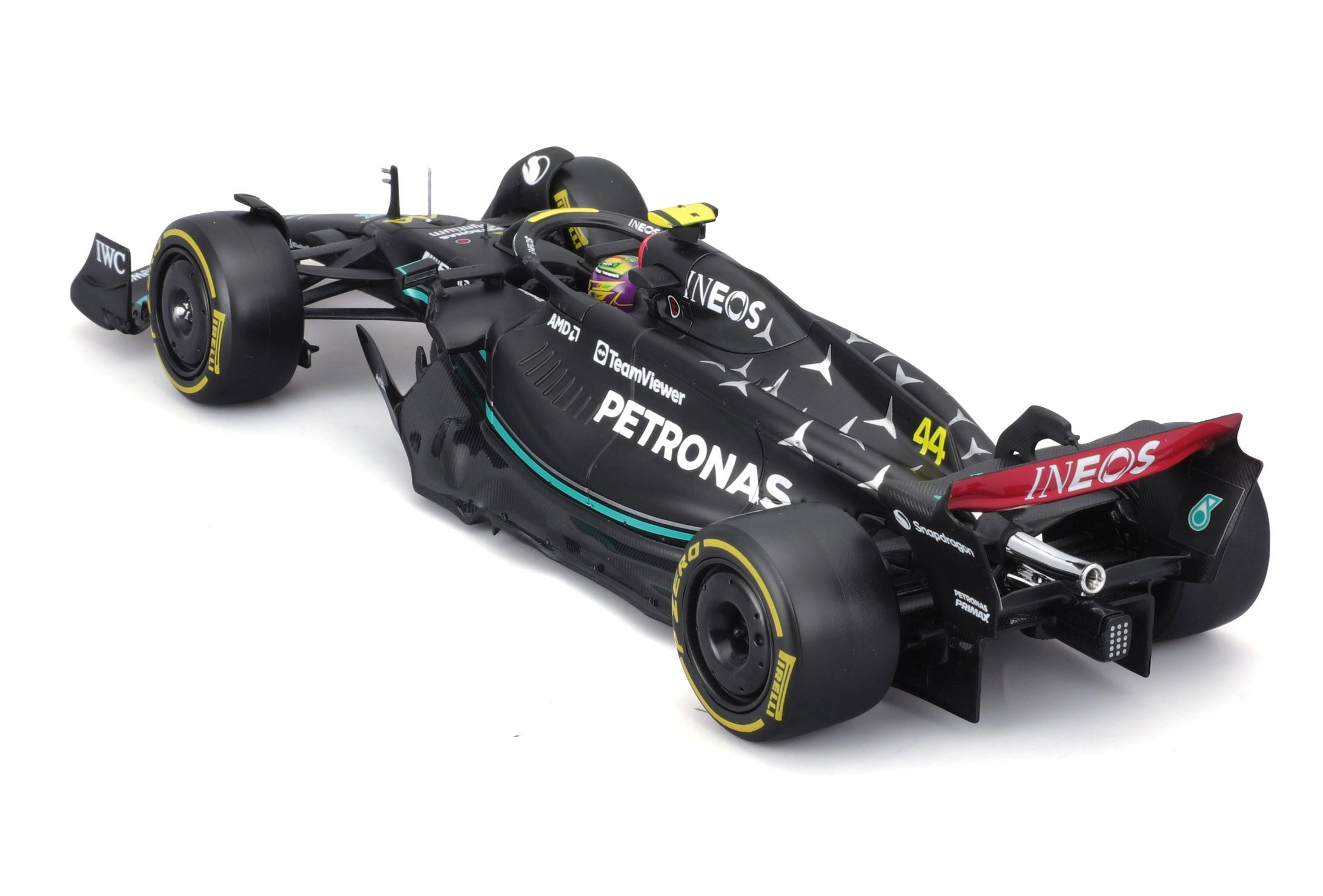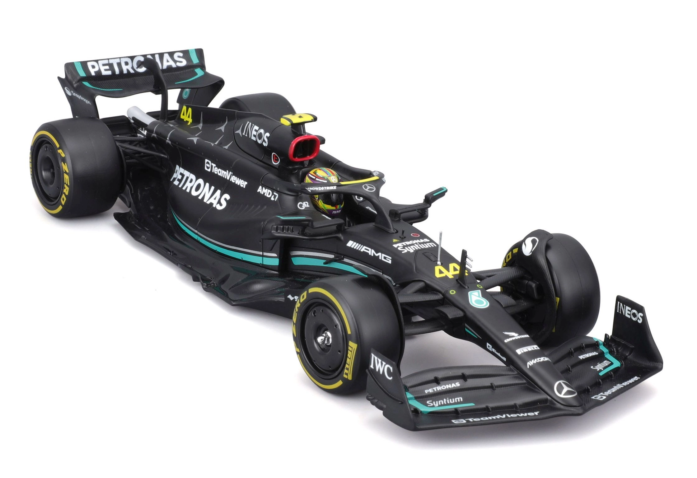 Izbaudiet ikonisko monopostu W14 E Performance (2023) komandas MERCEDES‑AMG PETRONAS izpildījumā ar starta numuru 44. Mēroga 1:24 modelis uzticami ataino virsbūves, spārnu, halo un raksturīgā krāsojuma detaļas. Ideāli piemērots vitrīnām, rakstāmgaldam vai kā dāvana motosporta faniem.
