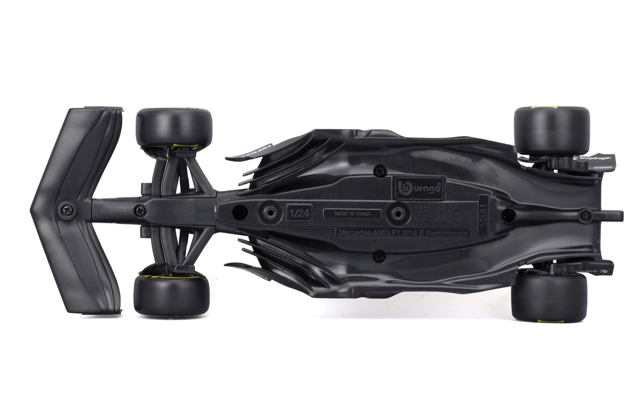 Precīzas sponsoru uzlīmes, pareizas proporcijas un ikoniskā melni-tirkīza W14 krāsu shēma piešķir modelim kolekcionāra vērtību.