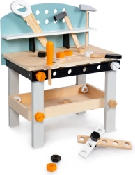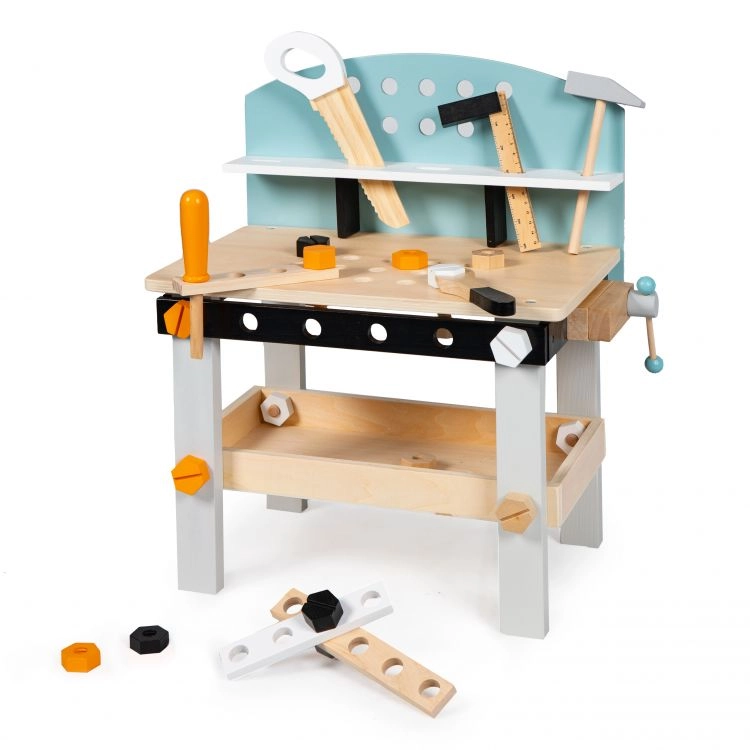 Ar ECOTOYS koka darbnīcu jūsu bērns jutīsies kā īsts meistars. Komplektā ir 38 detaļas, kas sniedz prieku no radīšanas un darbošanās savā tempā.