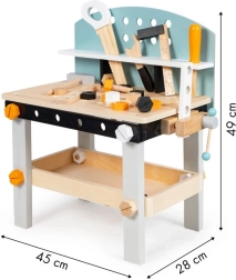 Sagādājiet savam bērnam prieku atdarināt pieaugušo darbu ar ECOTOYS zīmola koka darbnīcu. Šis komplekts nav tikai rotaļlieta, bet arī rīks loģiskās domāšanas, kreativitātes un roku veiklības attīstīšanai. Neatkarīgi no tā, vai tas ir koka skrūvju skrūvēšana, skrūvspīļu izmantošana vai instrumentu kārtošana, katra darbība veicina roku-acu koordināciju un piedāvā jautru mācīšanās pieredzi.