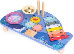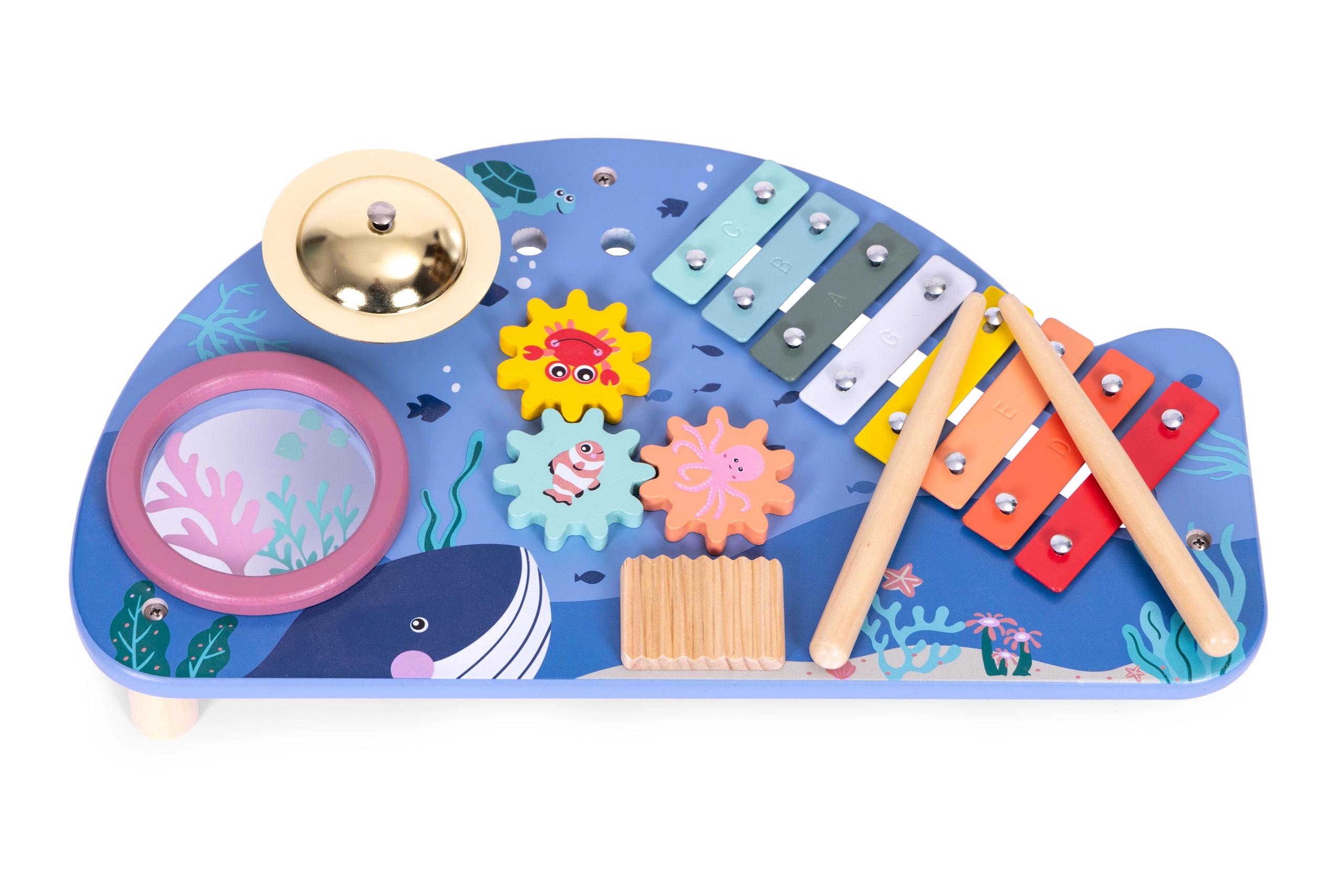 Piedāvājam unikālu bērnu mūzikas galdu, kas attīstīs jūsu bērna muzikālās spējas. Tā okeāna motīvs un drošā, noapaļoto malu konstrukcija nodrošina piemērotību bērniem no 18 mēnešu vecuma.